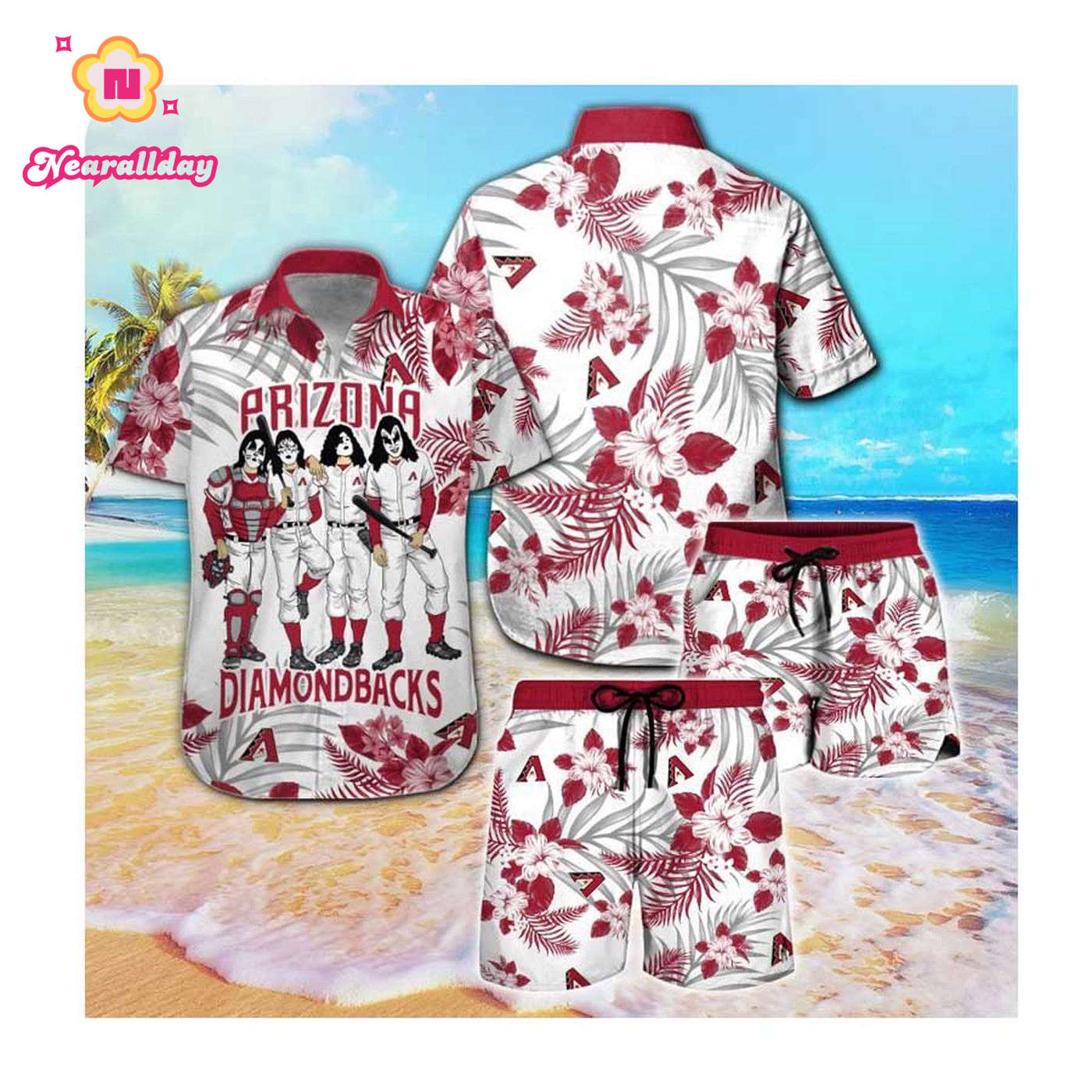 Arizona Diamondbacks and Kiss Hawaii Summer Button-Up Shirt for Men and Women
