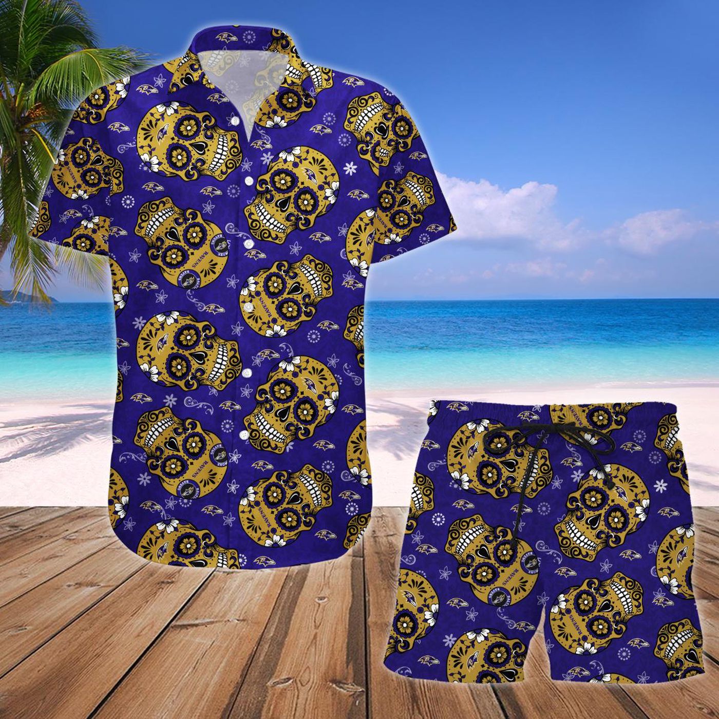 About Baltimore Ravens NFL SKull Hawaiian Shirt And Short information: