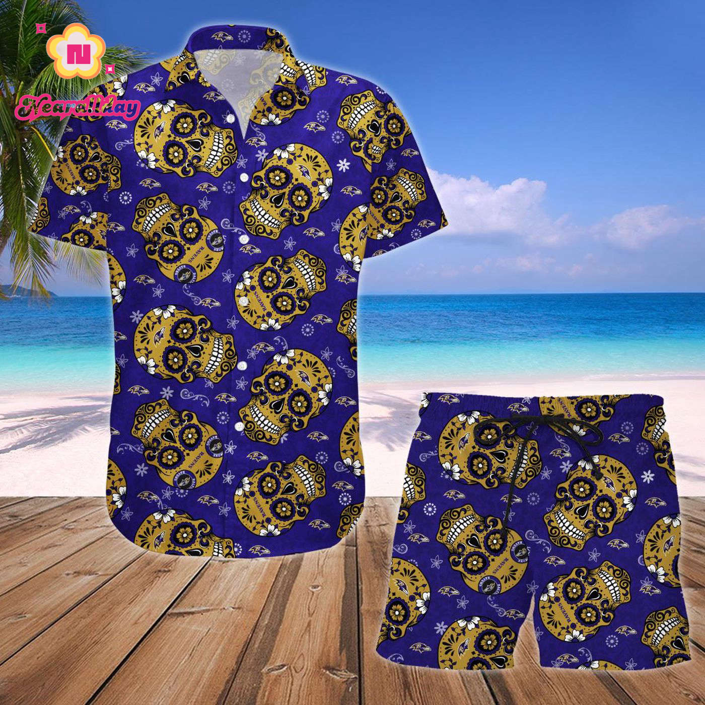 Baltimore Ravens NFL SKull Hawaiian Shirt And Short