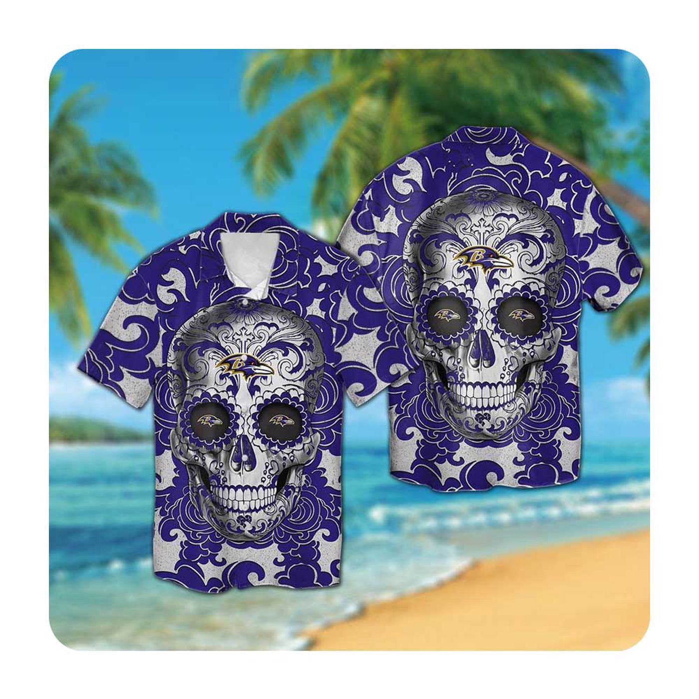 About Baltimore Ravens Sugar Skull Hawaii Shirt Summer Button Up Shirt For Men Women information: