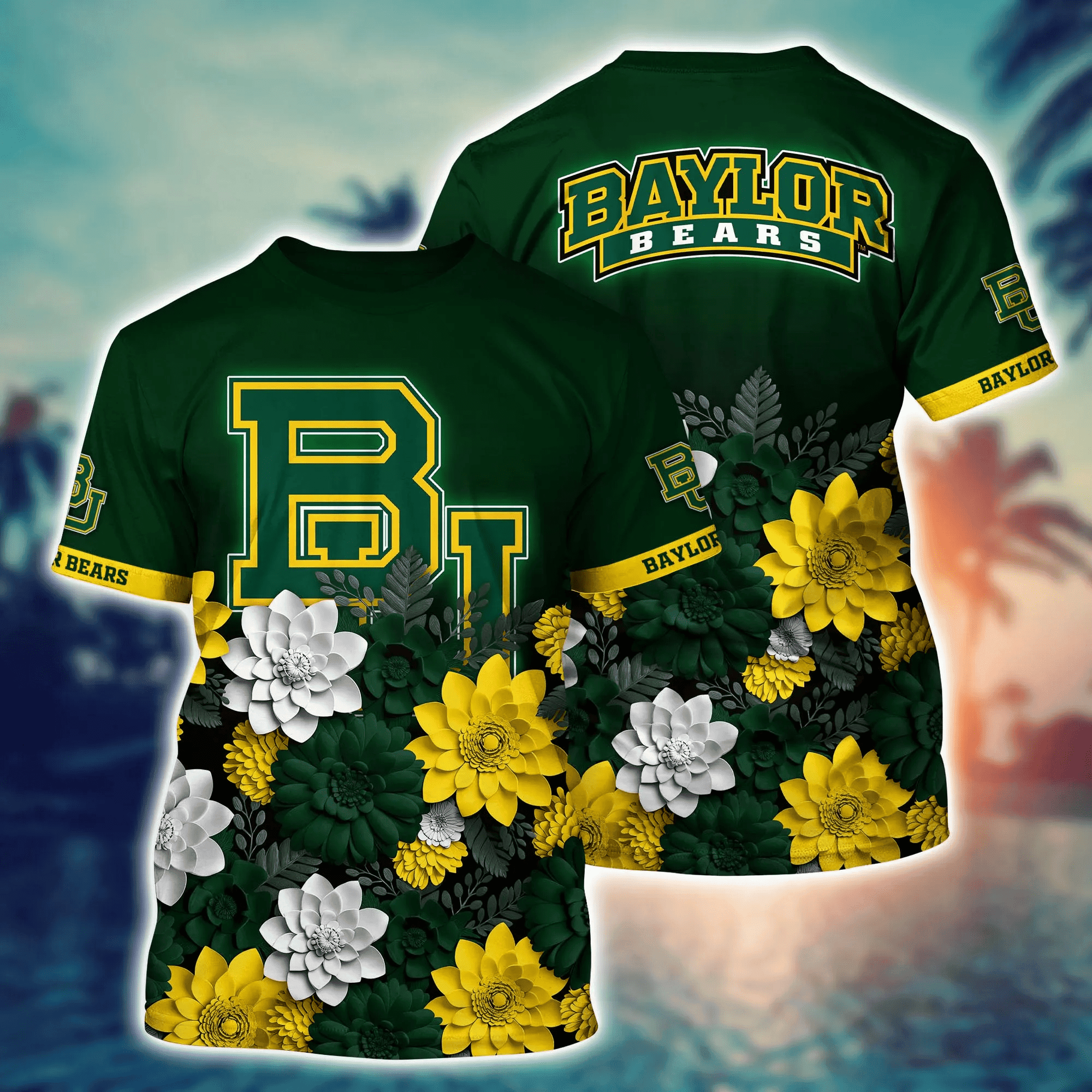 About Baylor Bears Flower 3D Button Hawaii Shirt Gift for Men Dad Father And T Shirt For Fans, Summer Football Shirts information: