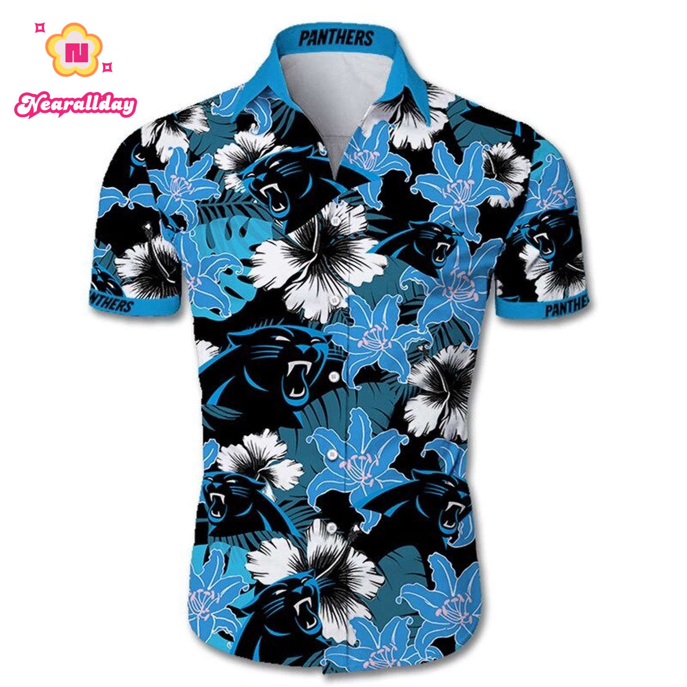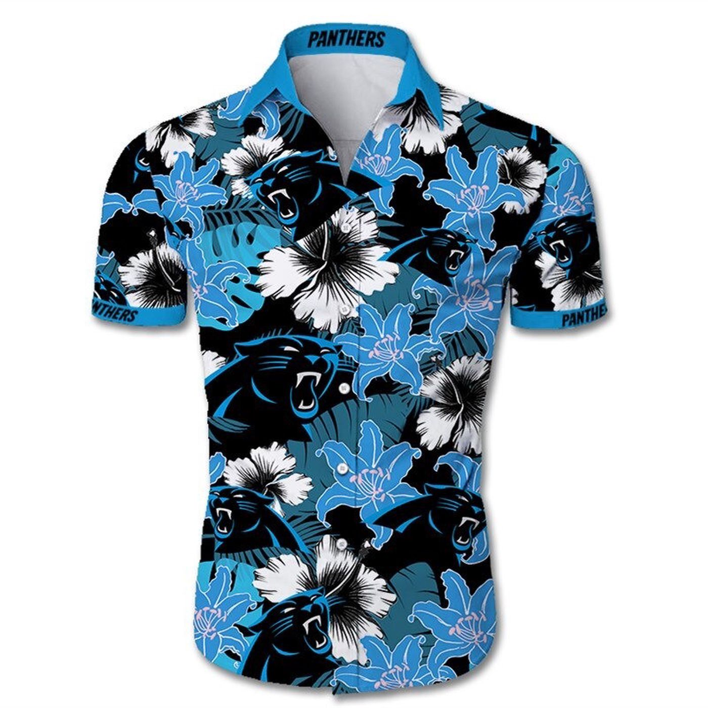 Beach Shirt Carolina Panthers Hawaiian Shirt Tropical Flower Short Sleeve Slim Fit Body