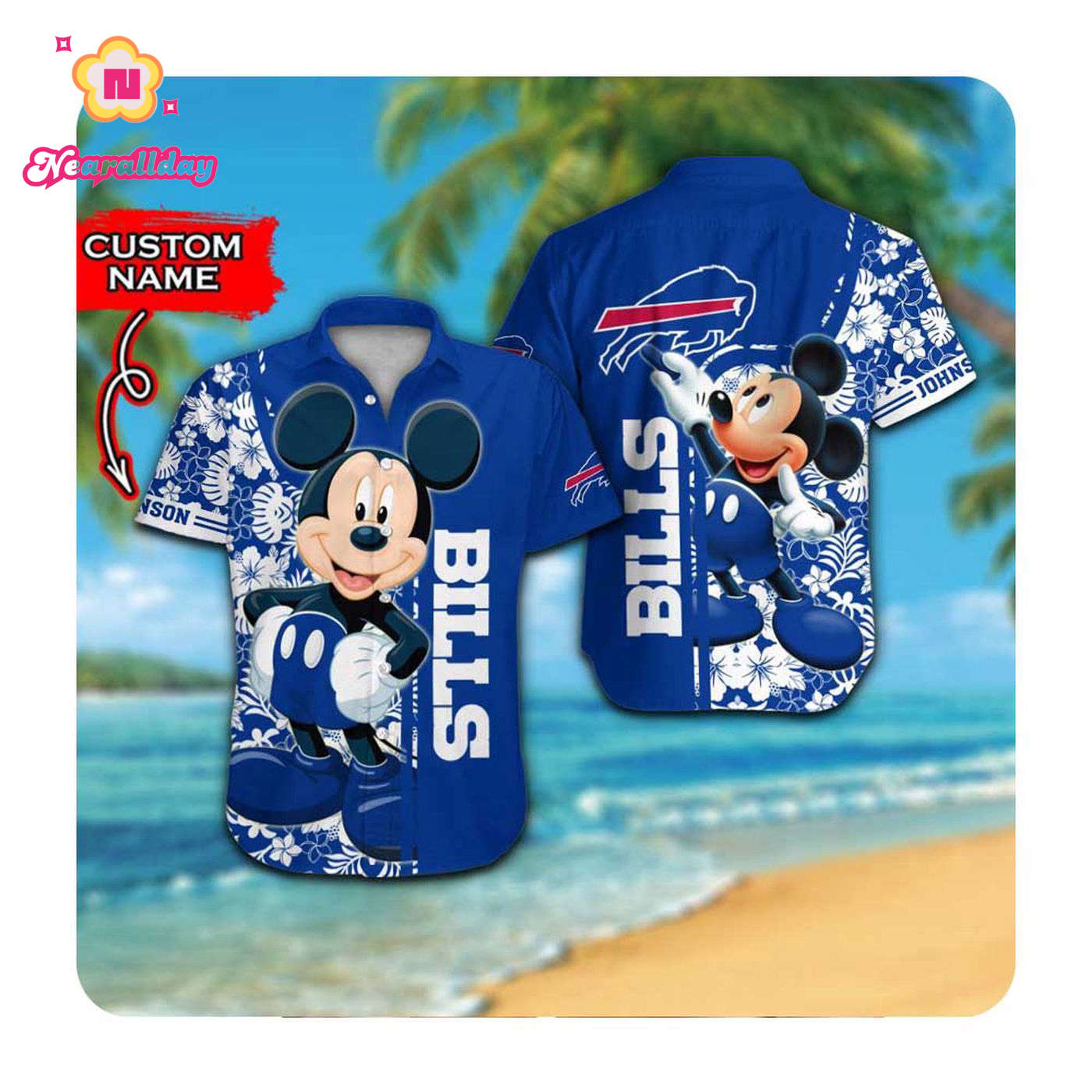 About Buffalo Bills And Mickey Mouse Custom Name Hawaii Shirt Summer Button Up Shirt For Men Women information: