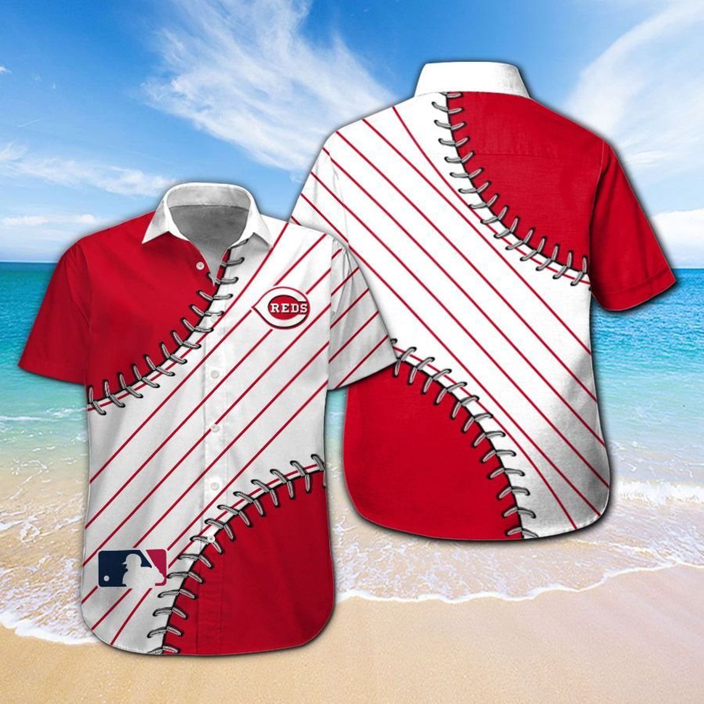 Get ready to cheer on the Cincinnati Reds in style with our Short Sleeve Button Up Tropical Aloha Hawaiian Shirt Set! Made for men, women, and kids, this vibrant shirt features the team’s logo and colors, perfect for showing your support at games or on vacation. Stay cool and comfortable while representing your favorite team with this unique and eye-catching shirt set. A must-have for any Reds fan!