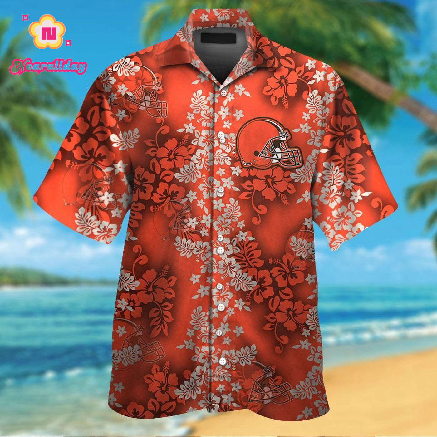 Cleveland Browns Short Sleeve Button Up Tropical Aloha Hawaiian Shirt Set for Men Women Kids Gift