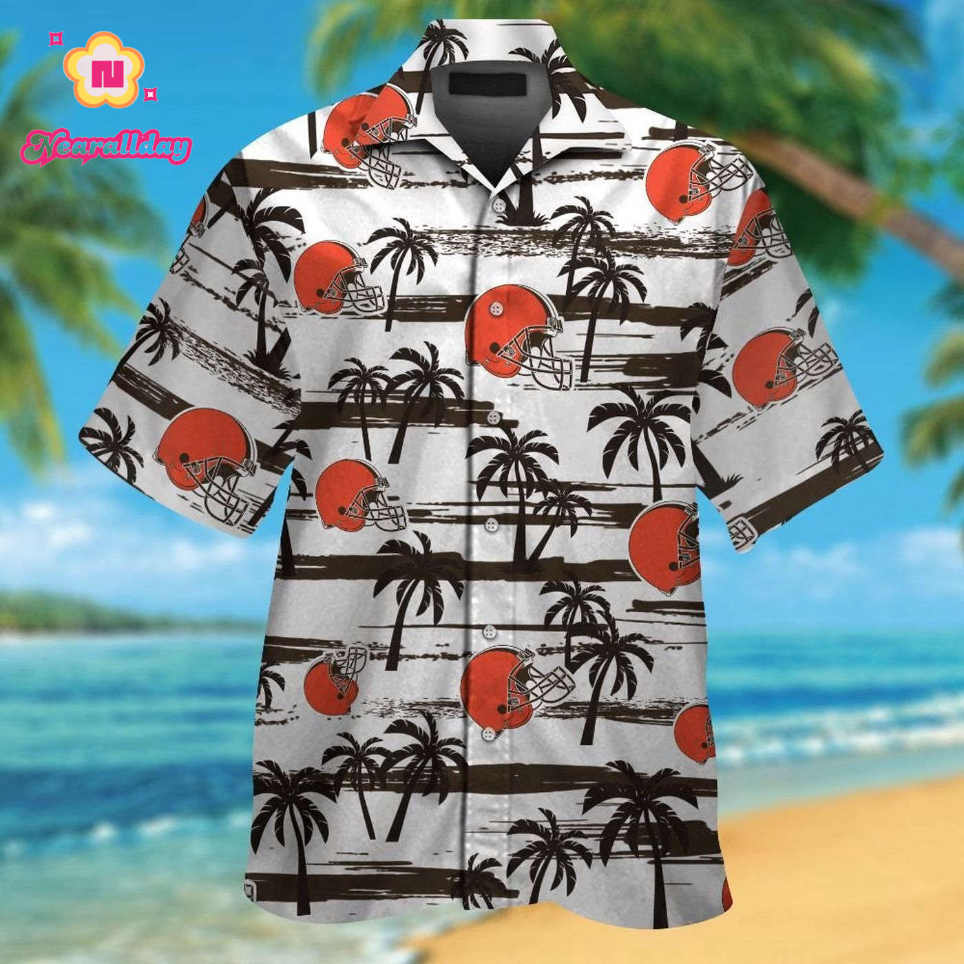Cleveland Browns Short Sleeve Button Up Tropical Aloha Hawaiian Shirt Set for Men Women Kids Gift