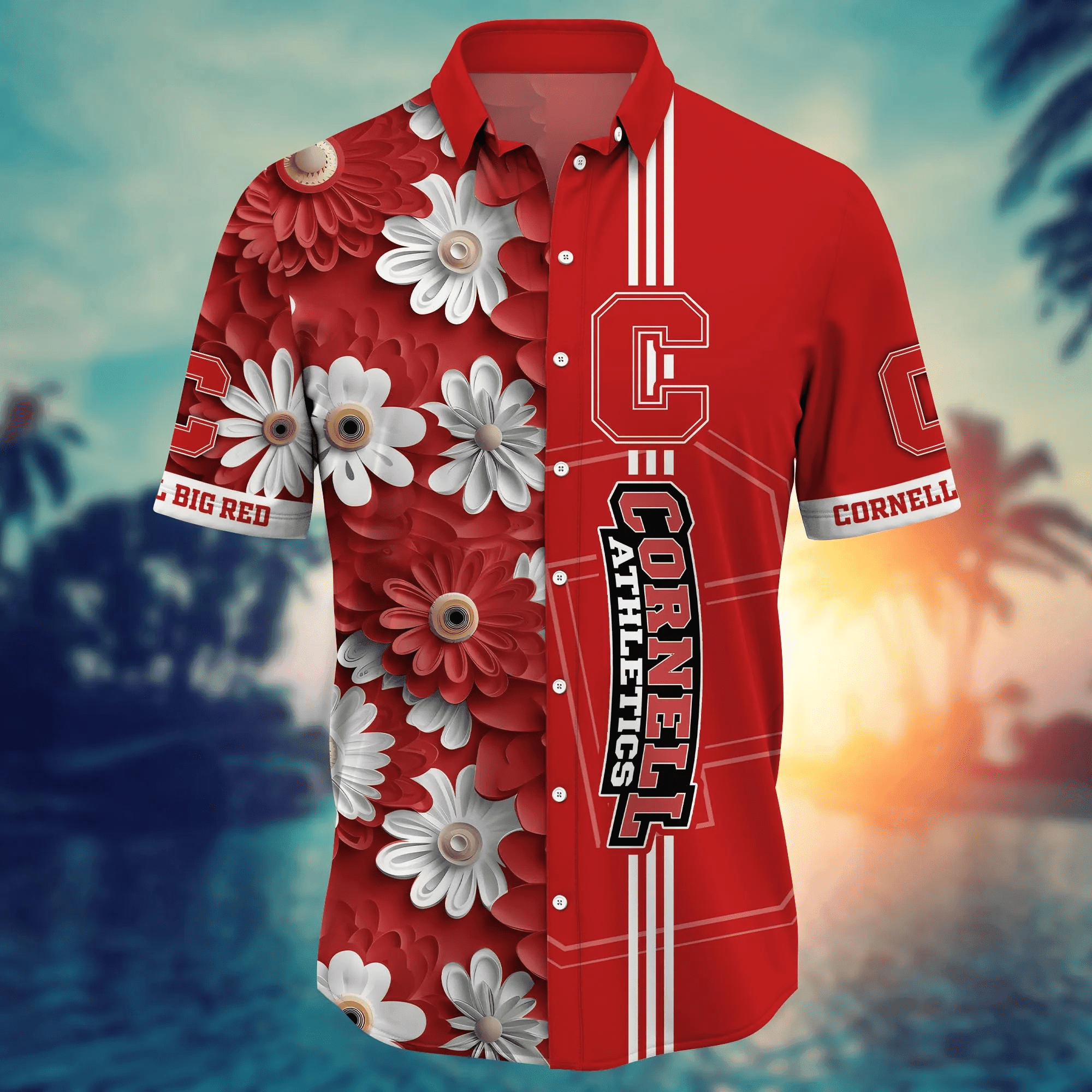 Cornell Big Red Flower 3D Button Hawaii Shirt Gift for Men Dad Father And T Shirt For Fans, Summer Football Shirts NA49574