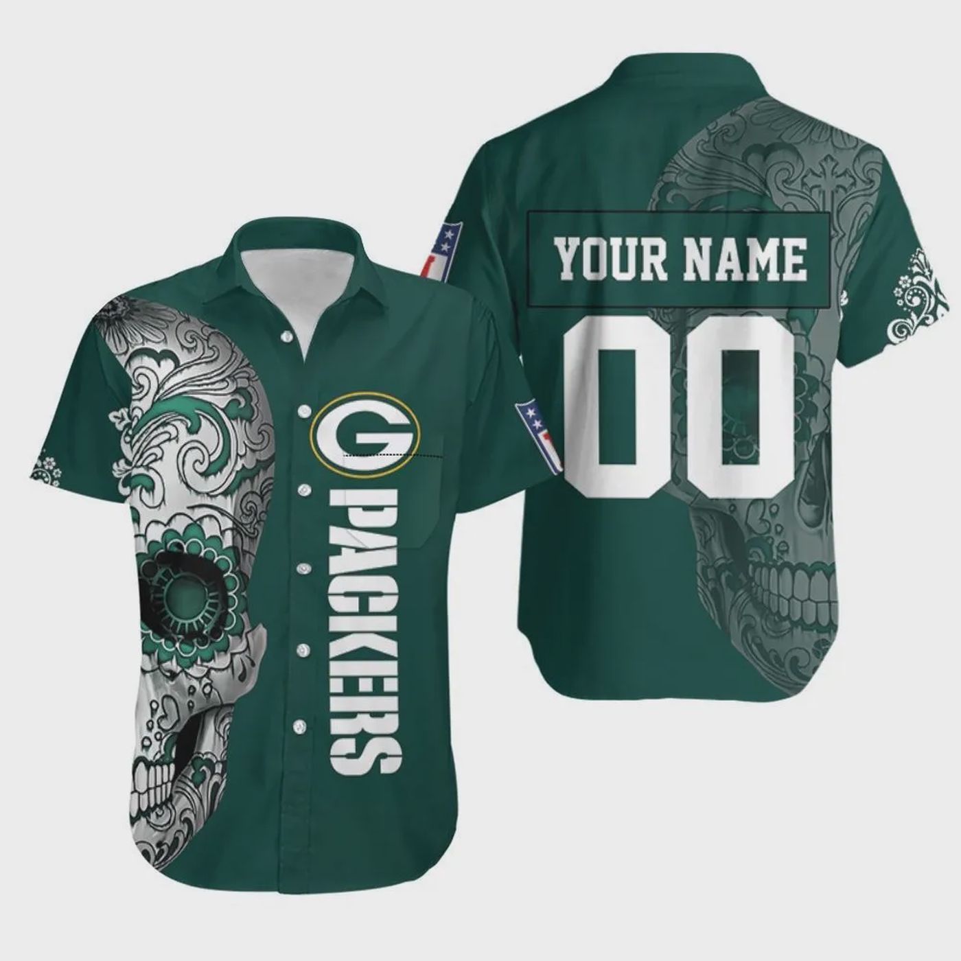 About Custom Green Bay Packers Sugar Skull Hawaiian Shirt information: