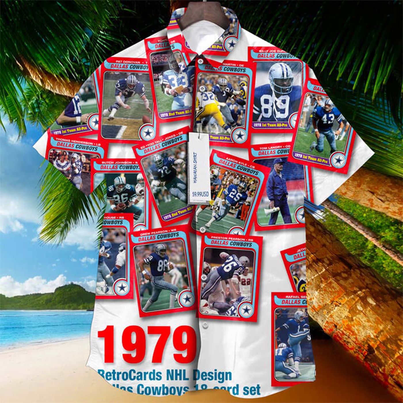 Step back in time with our Dallas Cowboys 1979 Retrocards Set Vintage Aloha Hawaiian Shirt! Made with premium materials, this shirt features iconic team graphics and a comfortable fit. Perfect for Cowboys fans looking to showcase their team pride in style.