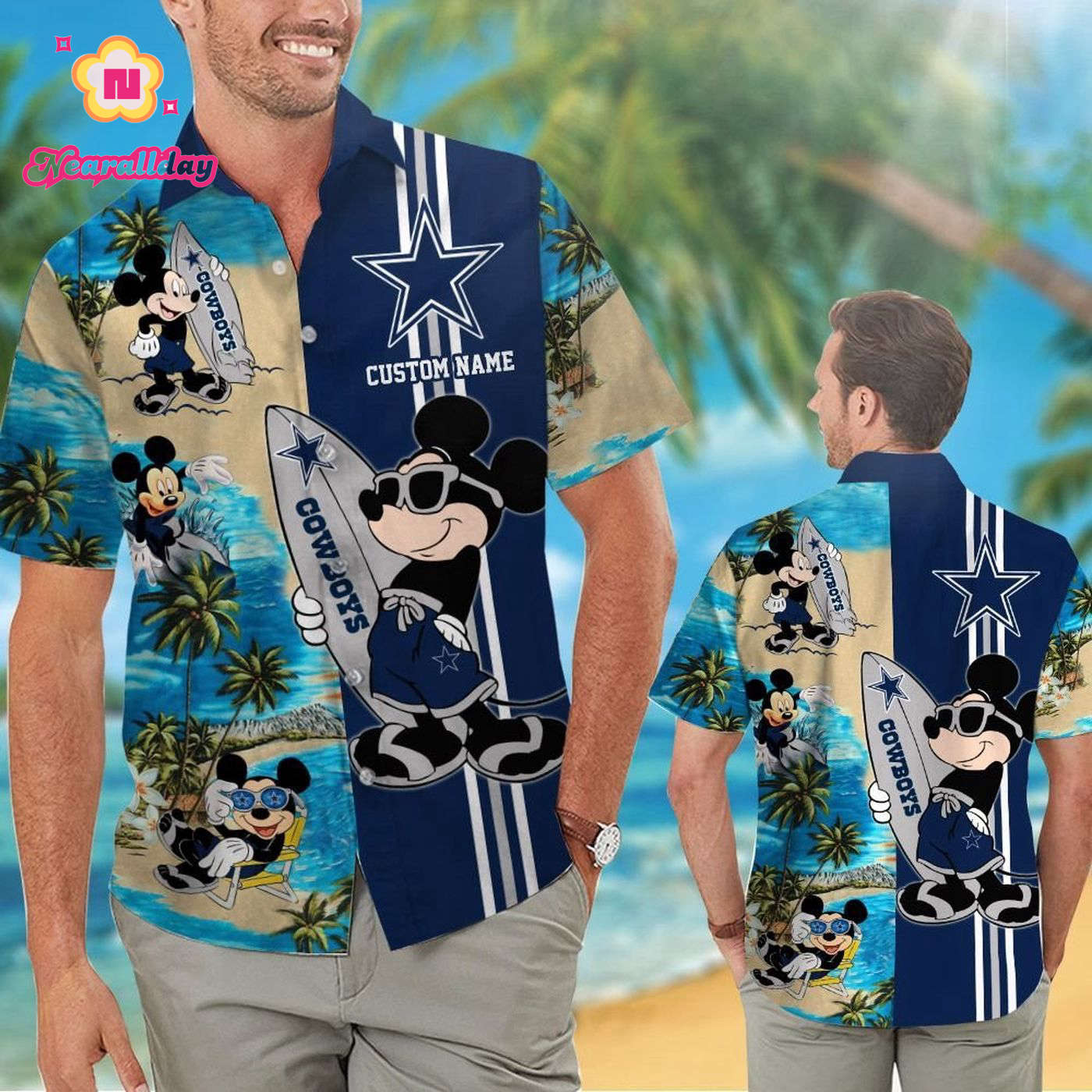 About Dallas Cowboys Mickey Name Personalized Short Sleeve Button Up Tropical Aloha Hawaiian Shirt Set for Men Women Kids information: