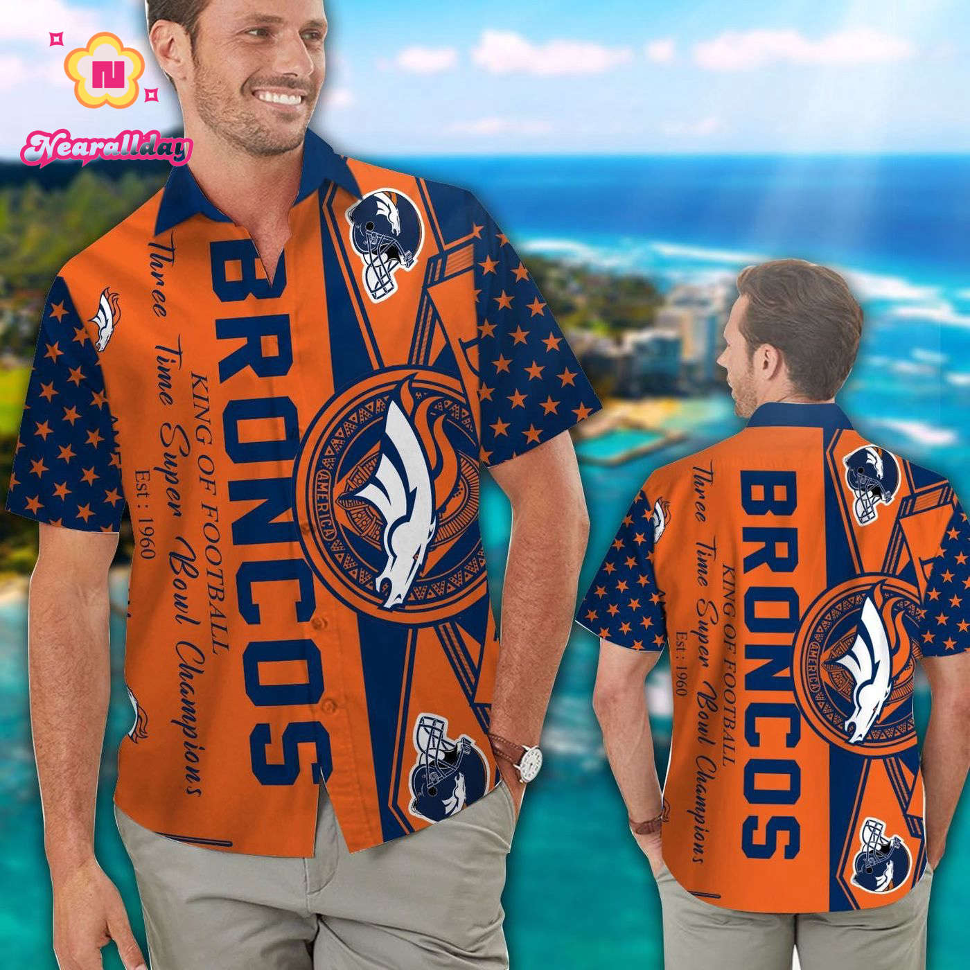 Elevate your game day style with our Denver Broncos Short Sleeve Button Up Tropical Aloha Hawaiian Shirt Set! Made for men, women, and kids, this vibrant shirt is perfect for showcasing your team spirit in a fun and unique way. Stand out in the crowd and show your support for your favorite team with this eye-catching shirt. Perfect for game days, tailgates, or any casual outing, this shirt is a must-have for any Broncos fan. Get yours today and bring a touch of tropical flair to your Broncos wardrobe!