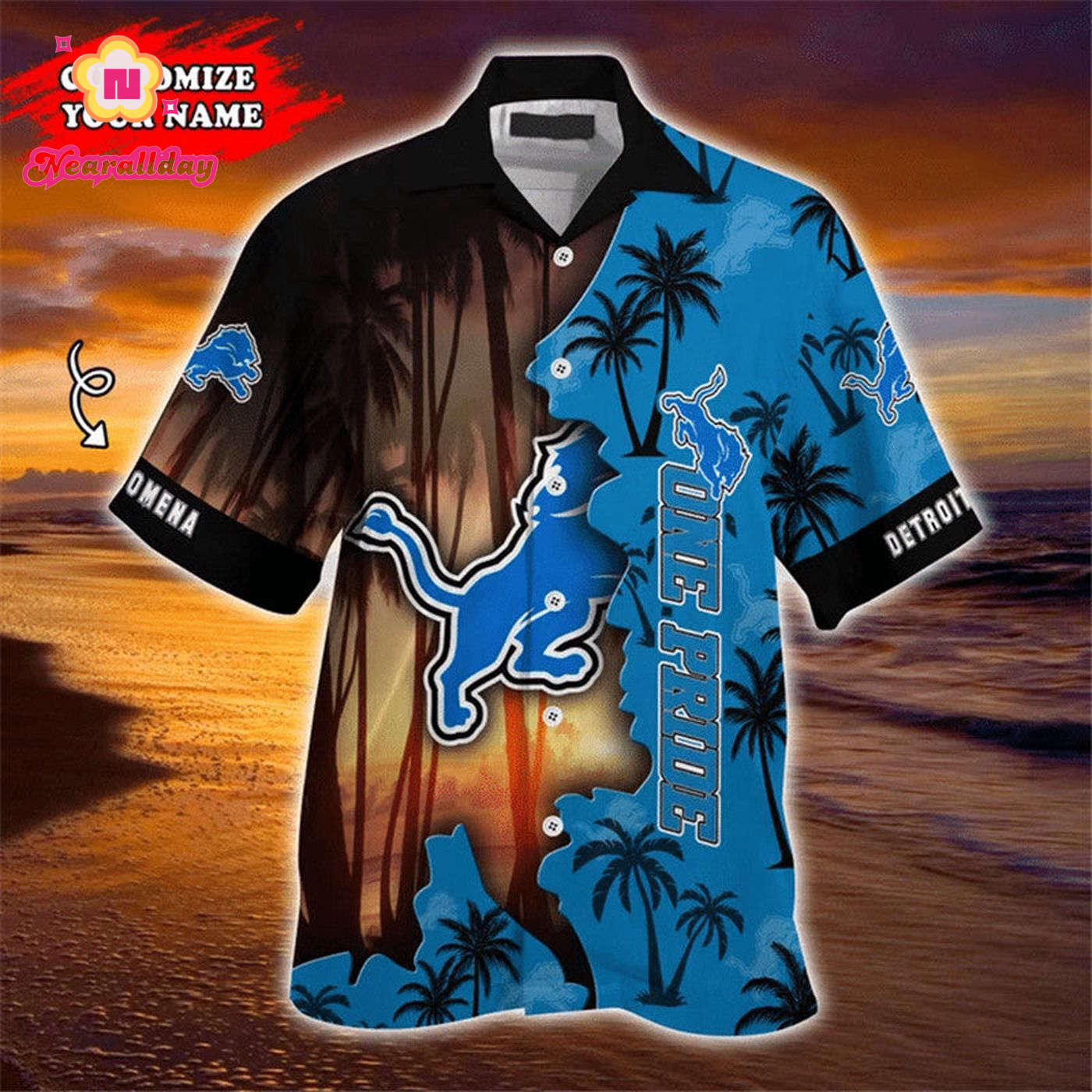 Get ready to show off your Detroit Lions pride in style with this customizable Hawaiian shirt! Made from high-quality materials, this shirt features the iconic Lions logo and can be personalized with your name. Perfect for game days, beach days, or just lounging around, this shirt is a must-have for any die-hard Lions fan. Stand out from the crowd and let everyone know who you root for with this unique and eye-catching shirt. Order yours today and elevate your fan gear to the next level!