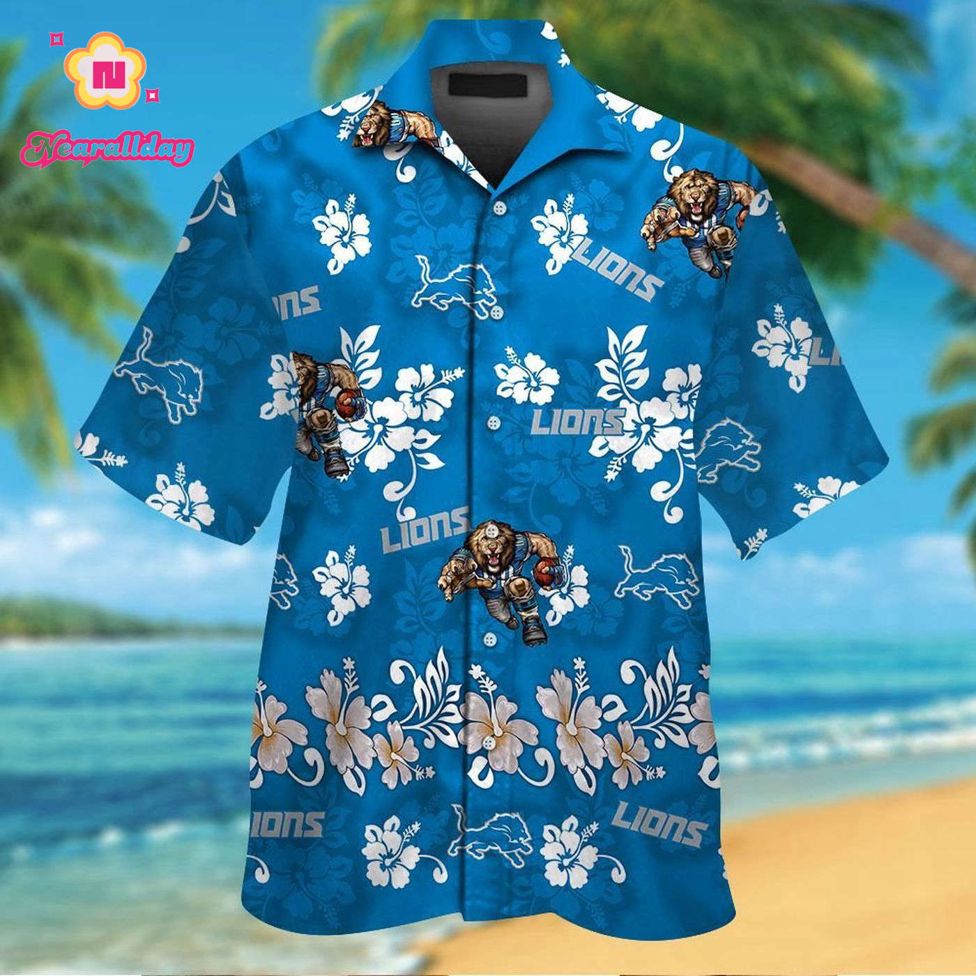 Detroit Lions Short Sleeve Button Up Tropical Aloha Hawaiian Shirt Set for Men Women Kids Gift