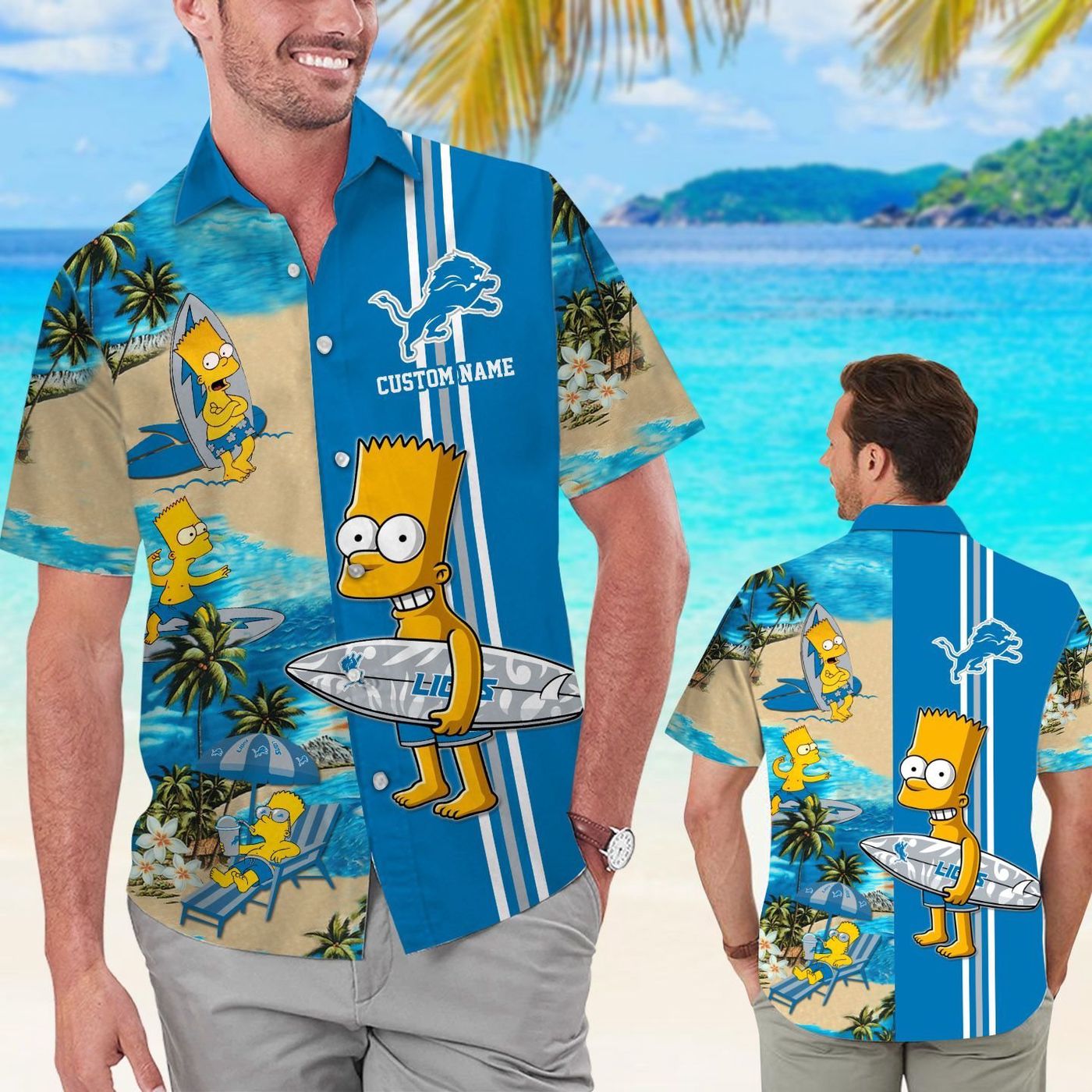 Get ready to show off your Detroit Lions pride in style with our Simpsons-themed personalized Hawaiian shirt set! Made for men, women, and kids, this button-up shirt is perfect for game days, parties, or just lounging in comfort. Stand out from the crowd with this unique and eye-catching design that combines your favorite football team with the iconic Simpsons characters. Made from high-quality materials, this shirt is not only stylish but also durable and comfortable to wear. Add your name for a personalized touch and make a statement wherever you go. Don’t miss out on this limited edition piece that offers both style and team spirit!