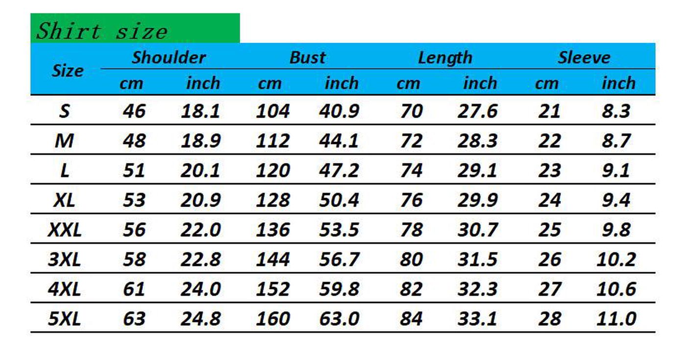 - Wide Range of Sizes: From S to 5XL, we’ve got every body type covered. Find your perfect fit and embrace your unique style.