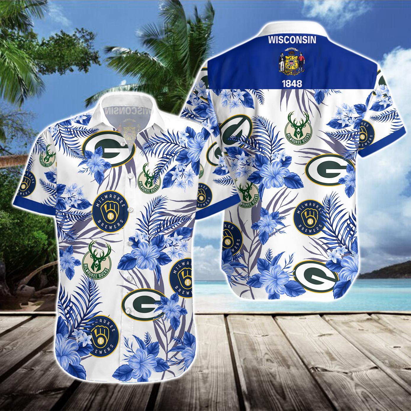 About Green Bay Packers Milwaukee Brewers Milwaukee Bucks Hawaiian Shirt Gift information: