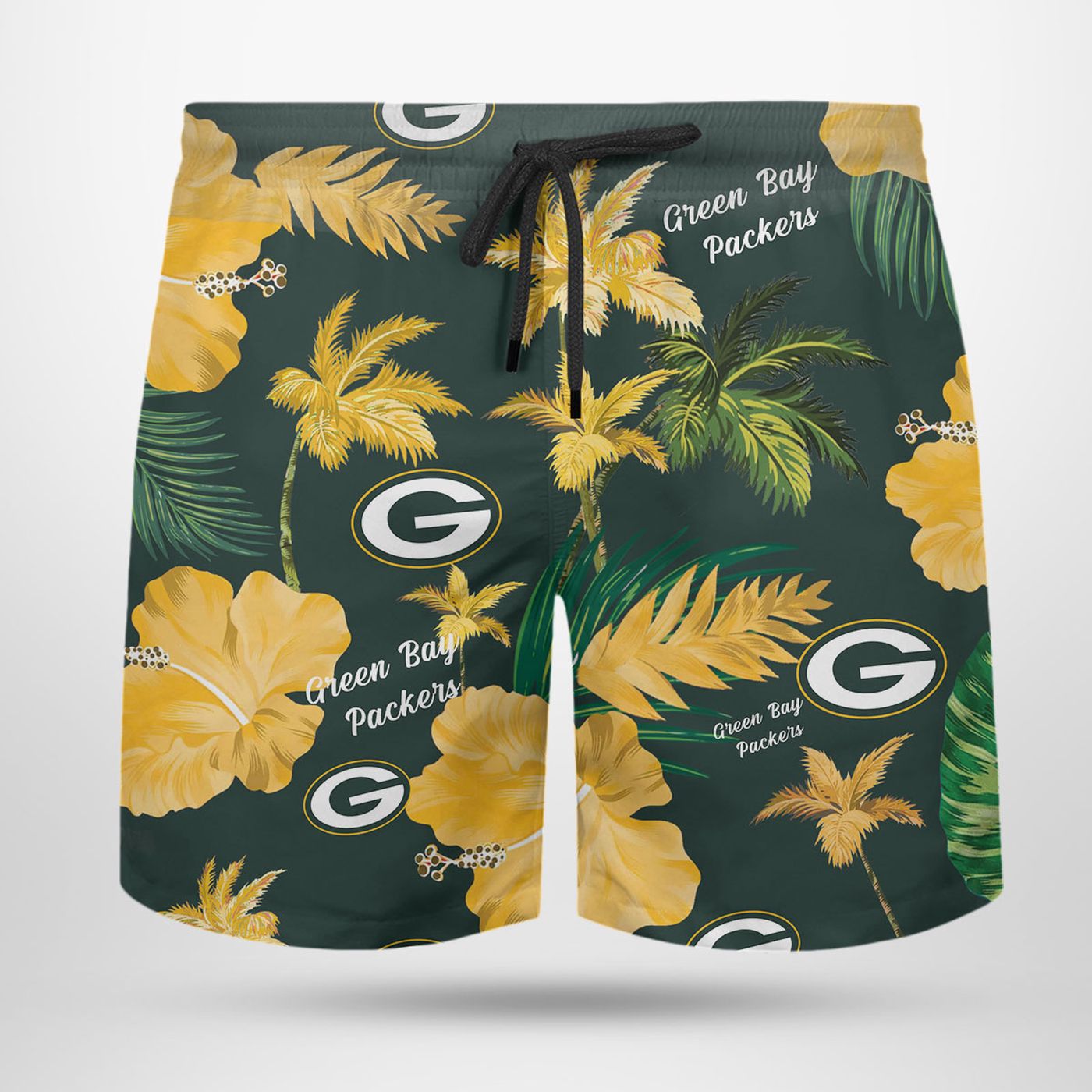 Green Bay Packers Nfl Color Hibiscus Button Up Hawaiian Shirt