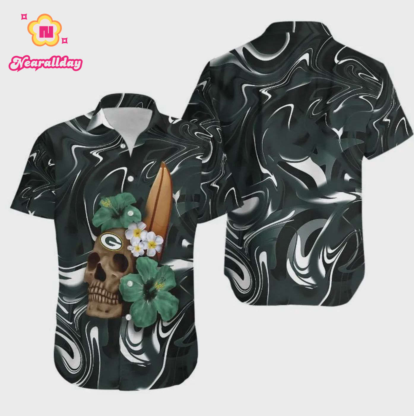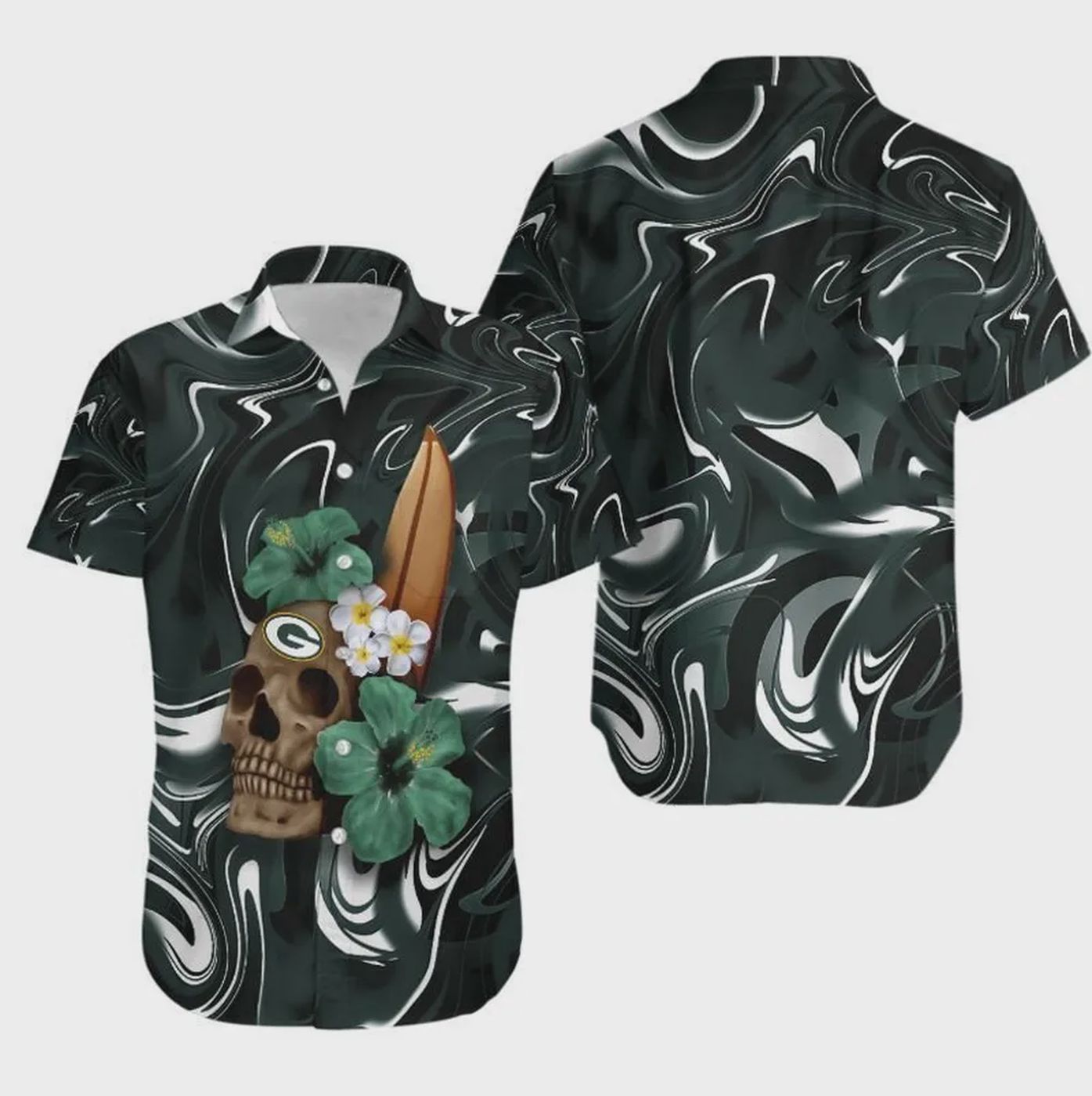 About Green Bay Packers Skull And Hibiscus Hawaiian Shirt information: