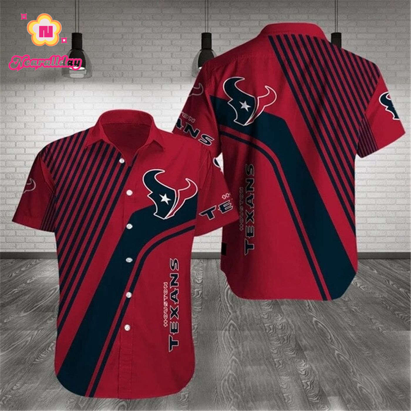 Get ready to show off your team pride in style with the Houston Texans Hawaiian Shirts Pattern Stripe! Made with high-quality materials and featuring the iconic Texans logo, this shirt is perfect for game days, tailgates, or just lounging in the sun. Stand out from the crowd and support your favorite team with this unique and fashionable shirt. Don’t miss out on the opportunity to elevate your fan gear collection with this must-have item!