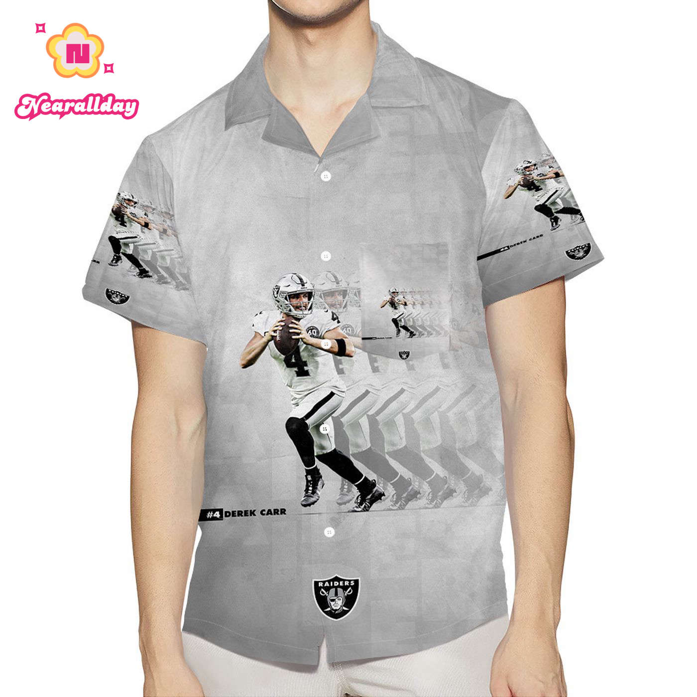 Get ready to show off your support for the Las Vegas Raiders and quarterback Derek Carr with this stylish 3D all-over print Hawaiian shirt! Perfect for summer beach days, it features a convenient pocket and is sure to make you stand out in the crowd. Add a touch of team spirit to your wardrobe with this unique and eye-catching shirt.