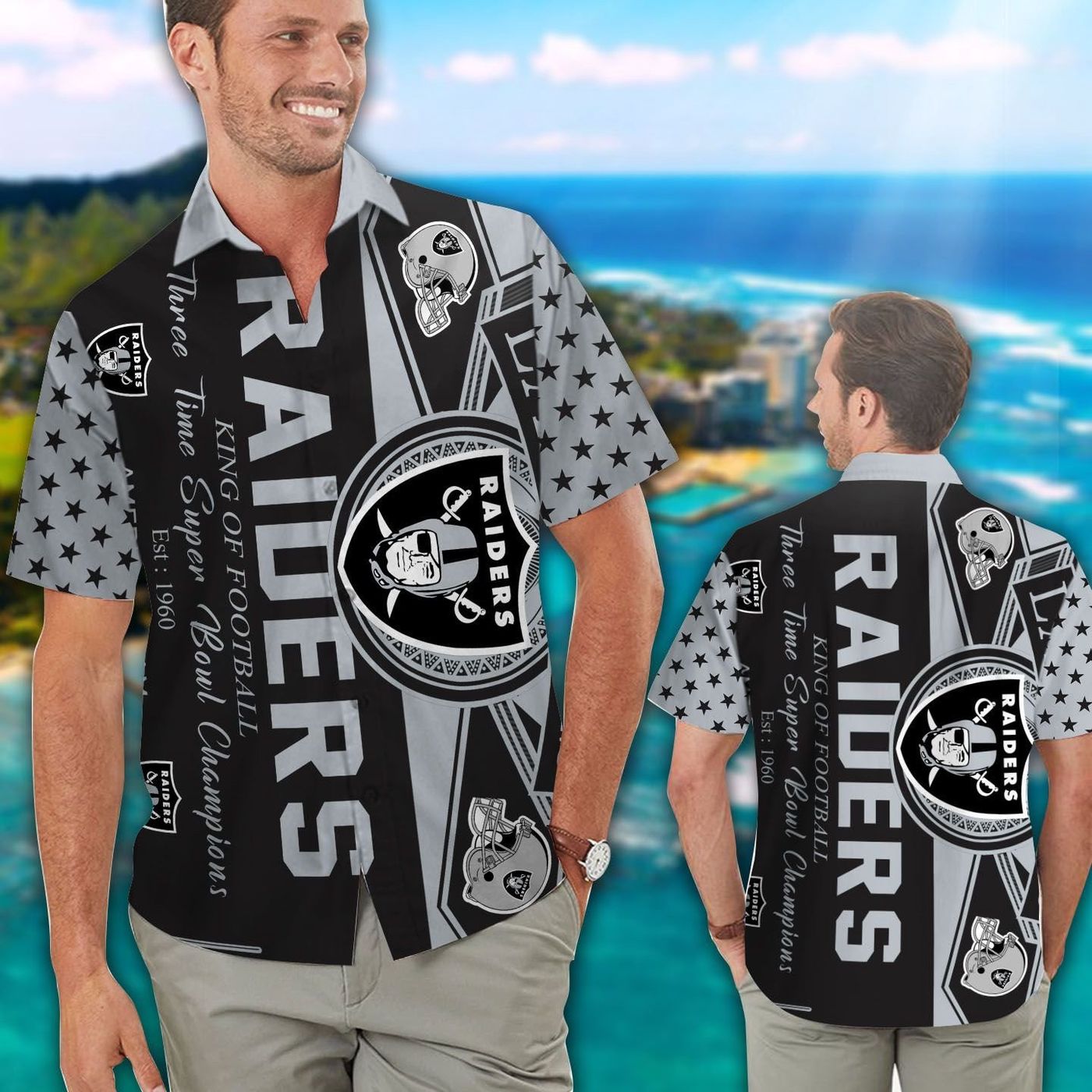 About Las Vegas Raiders Short Sleeve Button Up Tropical Aloha Hawaiian Shirt Set for Men Women Kids Gift information: