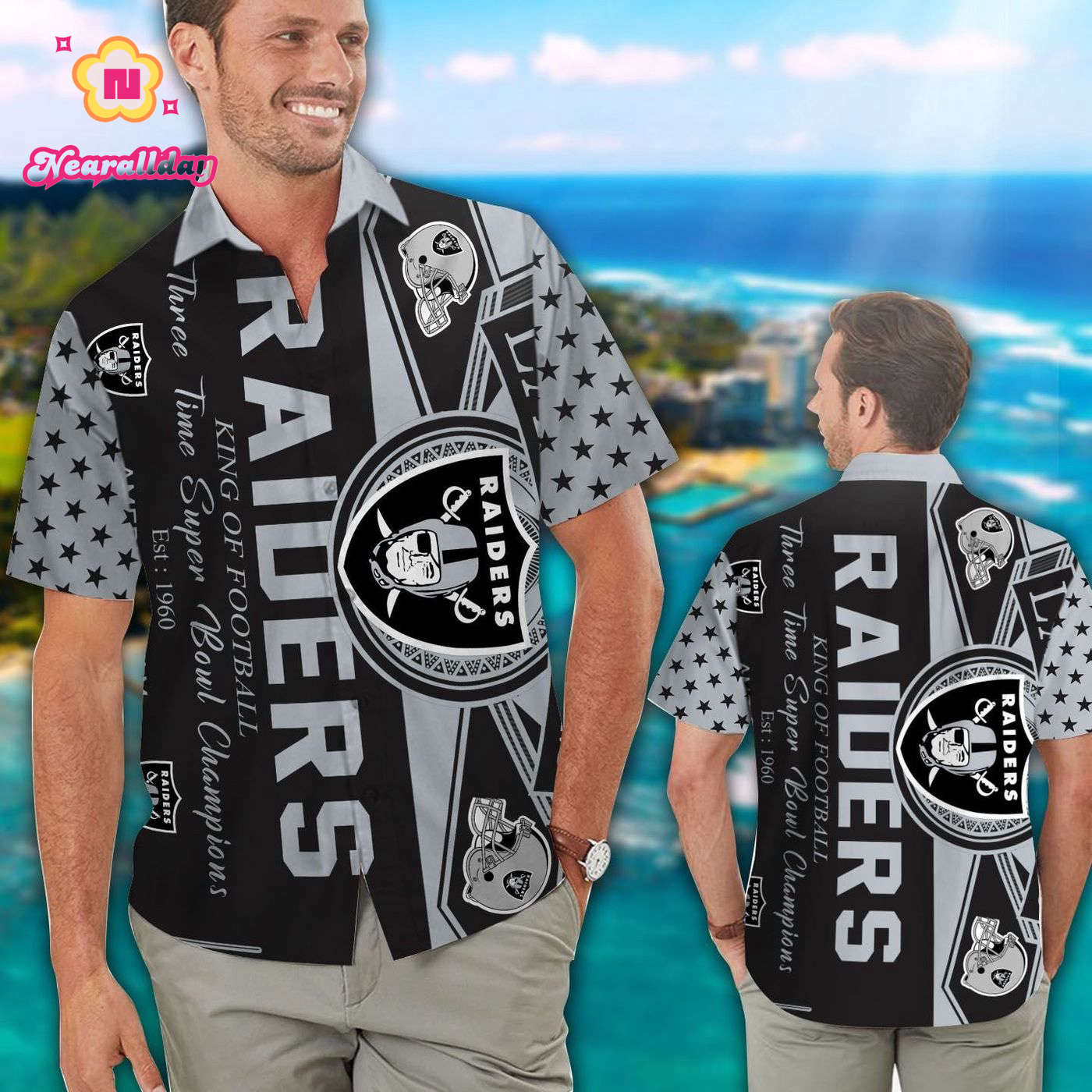 Elevate your game day style with our Las Vegas Raiders Short Sleeve Button Up Tropical Aloha Hawaiian Shirt Set! Perfect for men, women, and kids, this vibrant shirt is a must-have for any Raiders fan. Made from high-quality material, this shirt offers both style and comfort. Stand out from the crowd and show your team spirit with this unique and eye-catching shirt. Makes a perfect gift for any Raiders enthusiast. Get yours today and be ready to cheer on your favorite team in style!