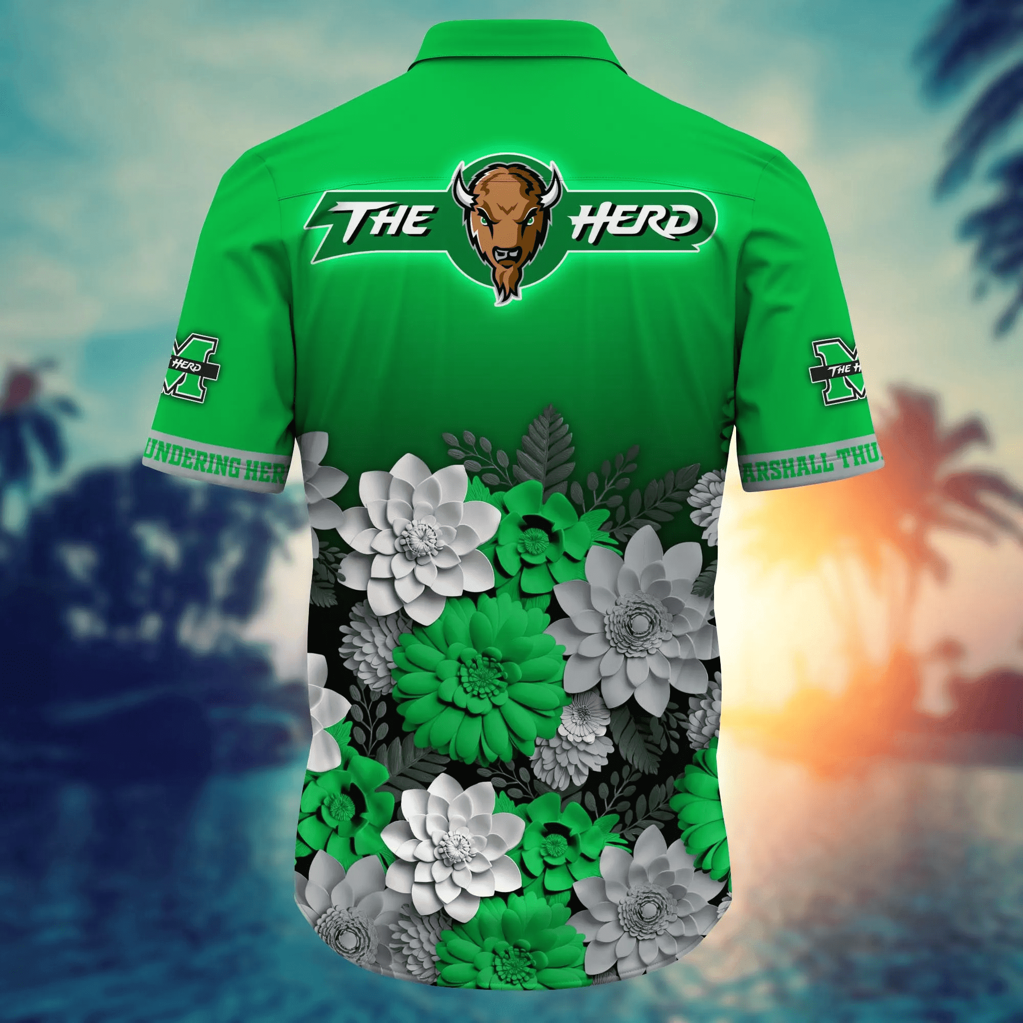 Marshall Thundering Herd Flower 3D Button Hawaii Shirt Gift for Men Dad Father And T Shirt For Fans, Summer Football Shirts
