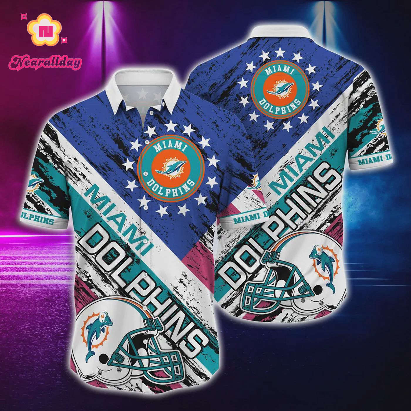 Introducing the Miami Dolphins Rugby Helmet Hawaiian Shirt – a unique fusion of style and sport. Made from high-quality materials, this shirt features the iconic Dolphins logo and a vibrant Hawaiian print. Stand out in the crowd while showing your team spirit. Perfect for game days, beach parties, or casual wear. Embrace the Miami Dolphins spirit with this one-of-a-kind shirt!