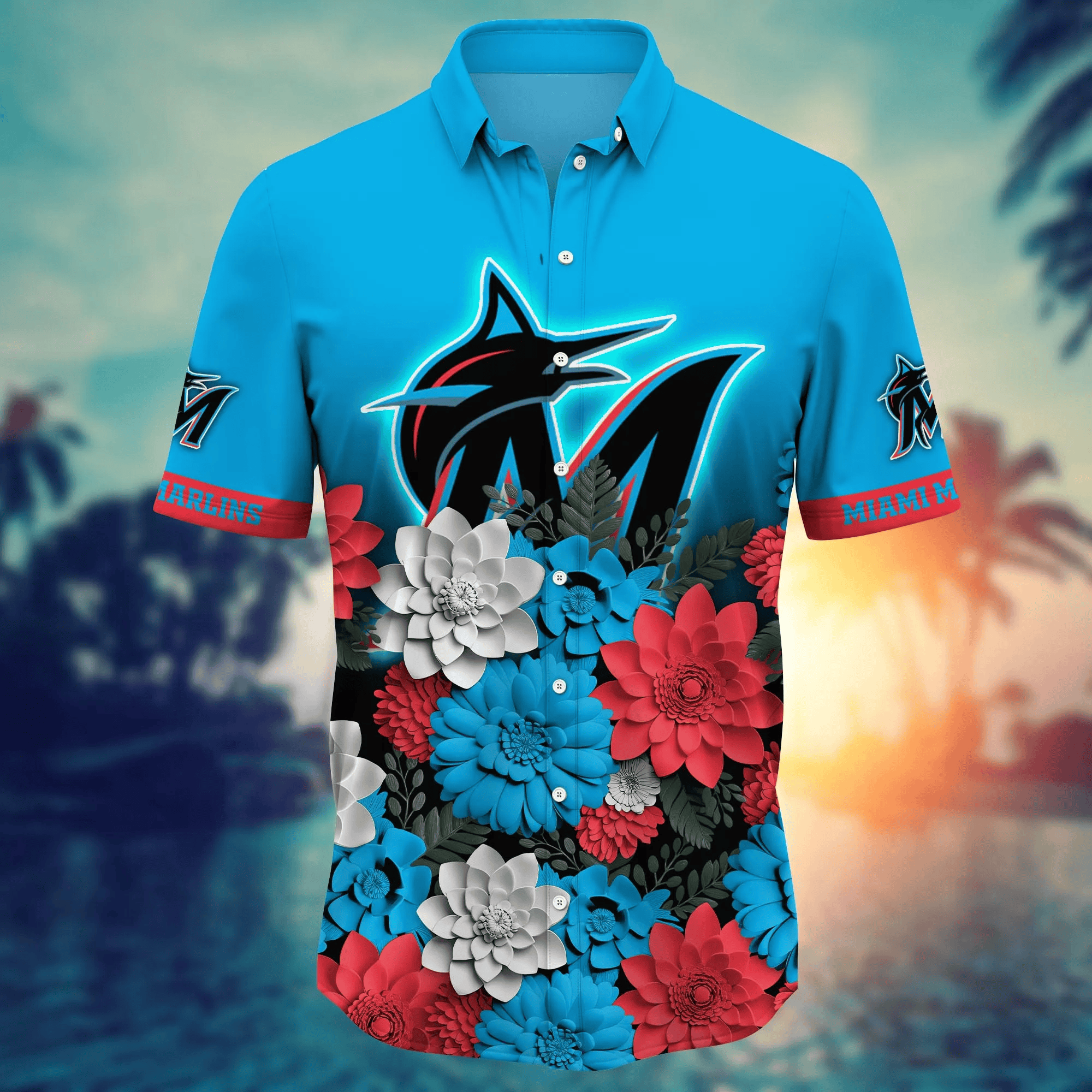 About Miami Marlins Flower 3D Button Hawaii Shirt Gift for Men Dad Father And T Shirt For Fans, Summer Football Shirts information:
