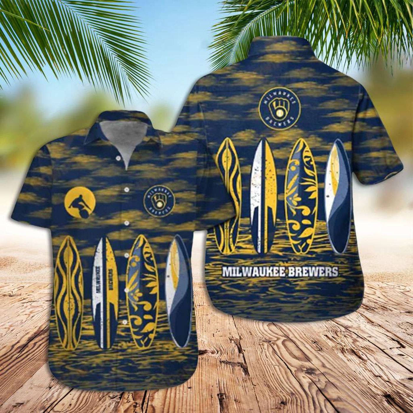 About Milwaukee Brewers Surfboard Hawaiian Shirt: Yellow Blue Beach Style information: