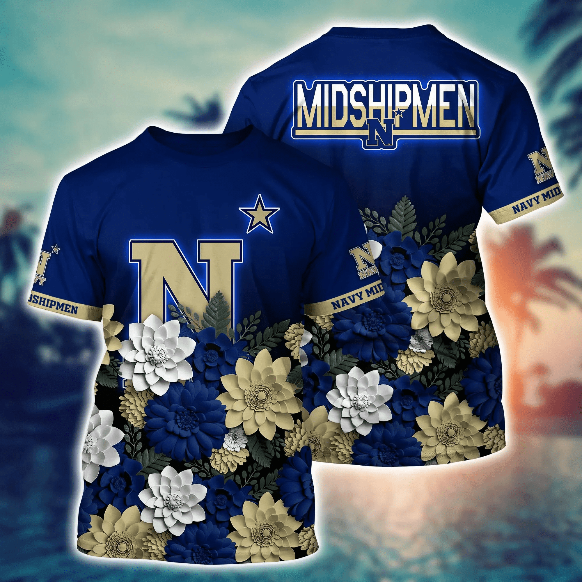 Navy Midshipmen Flower 3D Button Hawaii Shirt Gift for Men Dad Father And T Shirt For Fans, Summer Football Shirts