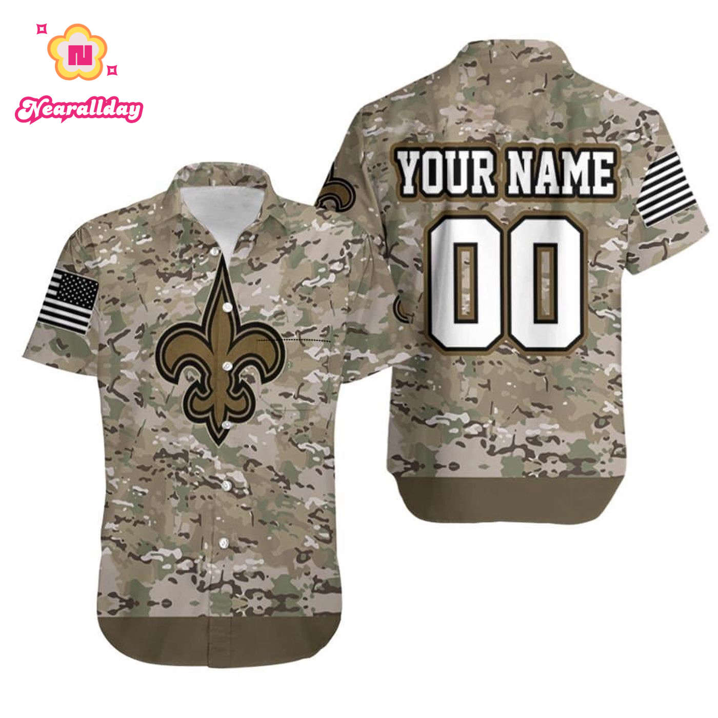 About New Orleans Saints Camouflage Veteran 3D Personalized Hawaiian Shirt information: