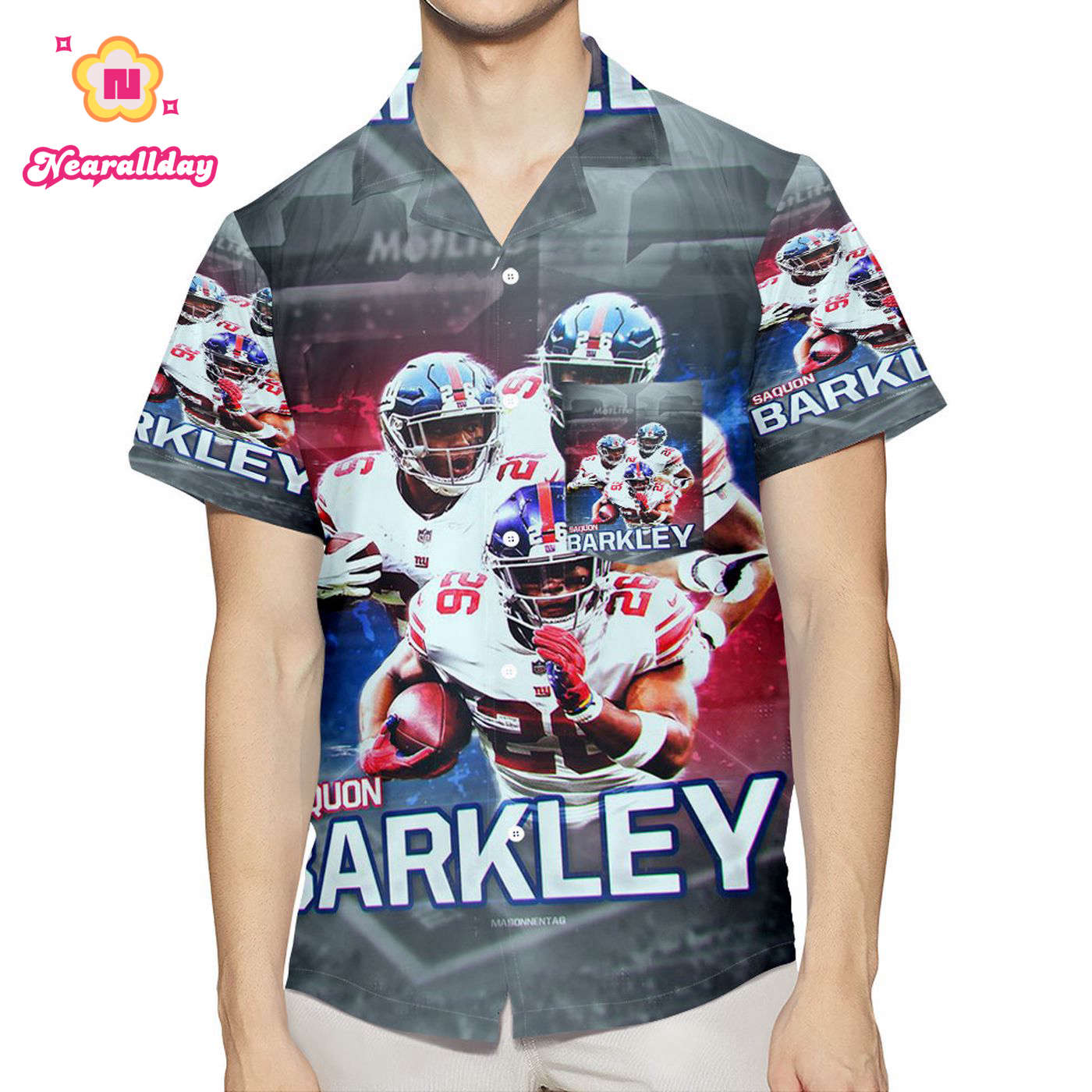 Get ready to show off your love for the New York Giants and star player Saquon Barkley with this eye-catching 3D all-over print Hawaiian shirt. Made for summer beach days, this shirt features a convenient pocket and vibrant colors that will make you stand out in the crowd. Embrace your team spirit in style with this unique and comfortable shirt!