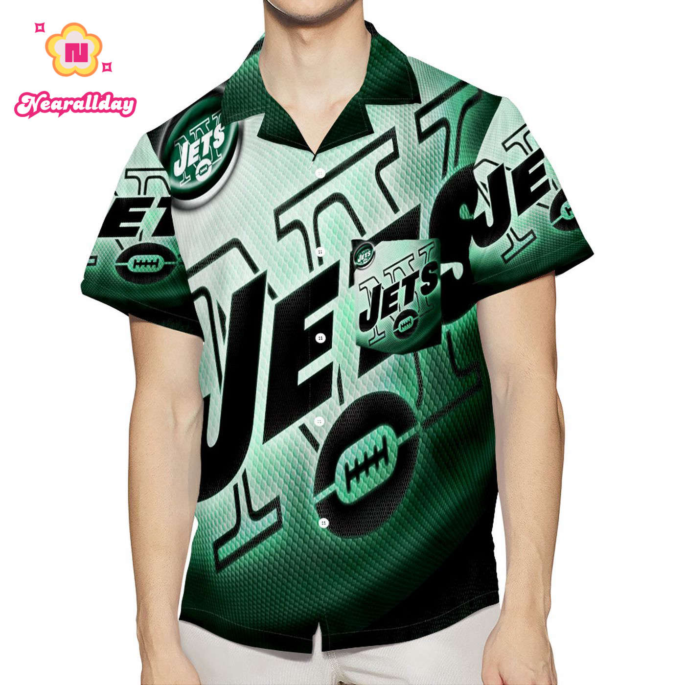 Stand out at the beach or pool with the New York Jets Emblem v9 3D All Over Print Hawaiian Shirt! Featuring a vibrant design, soft fabric, and a convenient pocket, this shirt offers both style and functionality. Perfect for any Jets fan looking to show off their team pride in a unique way. Upgrade your summer wardrobe with this eye-catching shirt!