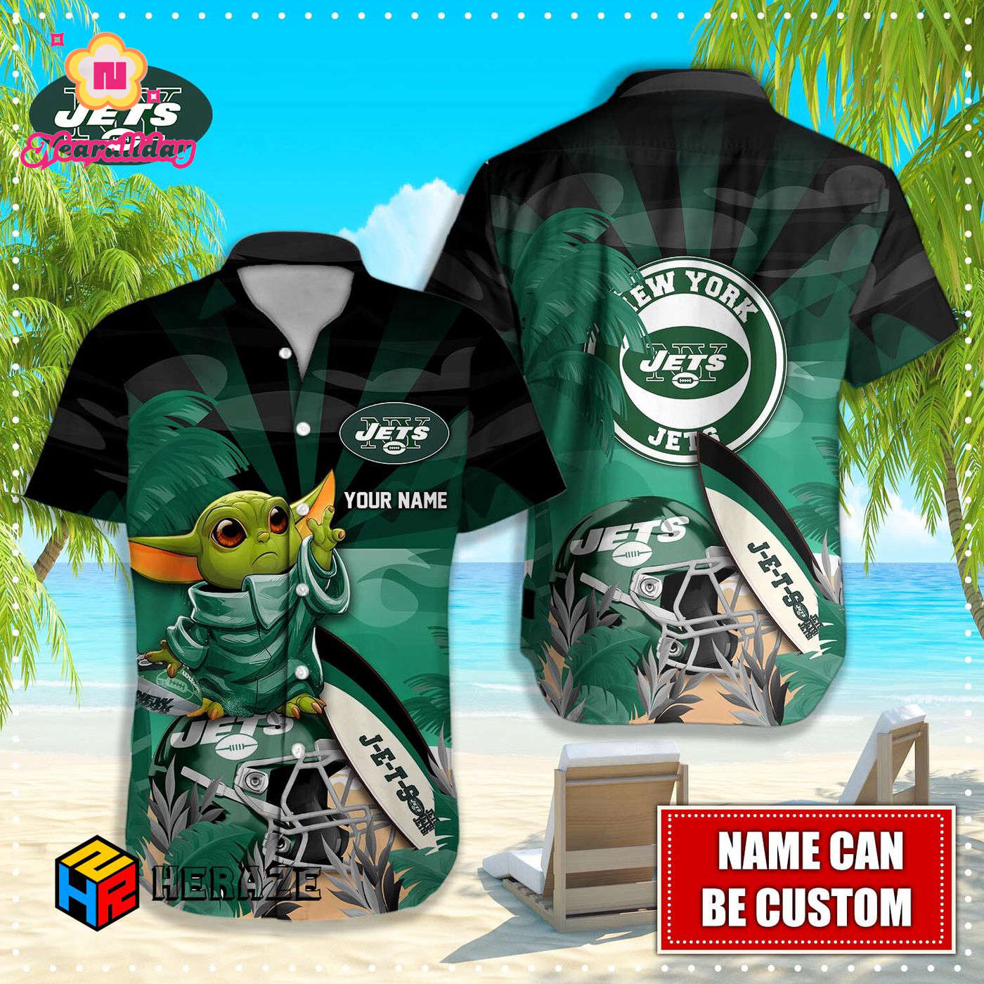 Get ready to show off your team pride in style with the New York Jets NFL Custom Hawaiian Shirt! Made with high-quality materials, this shirt features a vibrant design that lets you support your favorite team while staying comfortable. Stand out from the crowd and make a statement with this unique piece of fan gear. Perfect for game days, tailgates, or just lounging around, this shirt is a must-have for any Jets fan. Add a touch of tropical flair to your wardrobe and showcase your love for the New York Jets with this custom Hawaiian shirt.