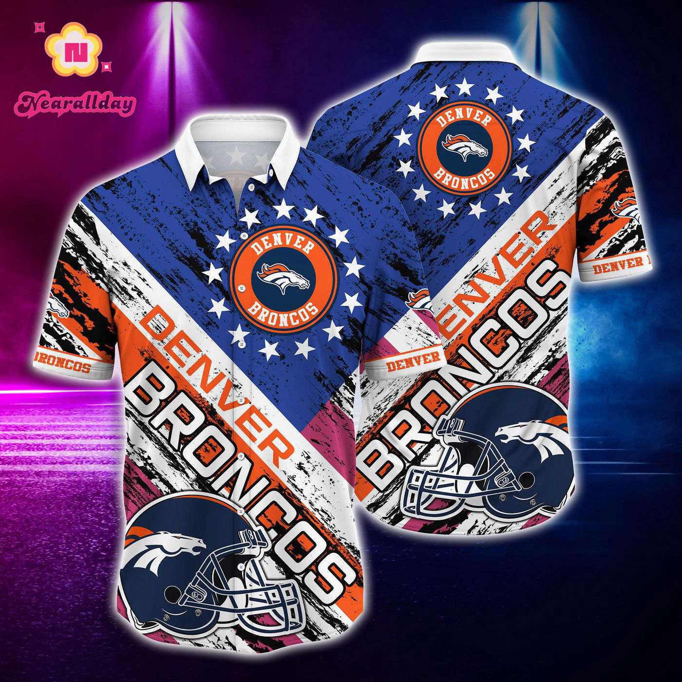 Get ready to show off your team spirit in style with our NFL Hawaiian Shirt featuring the Denver Broncos logo. Made with high-quality materials, this shirt is perfect for game days or casual outings. Pair it with our Tshirt rugby helmet for the ultimate fan look. Stand out from the crowd and support your team with these unique and eye-catching pieces!