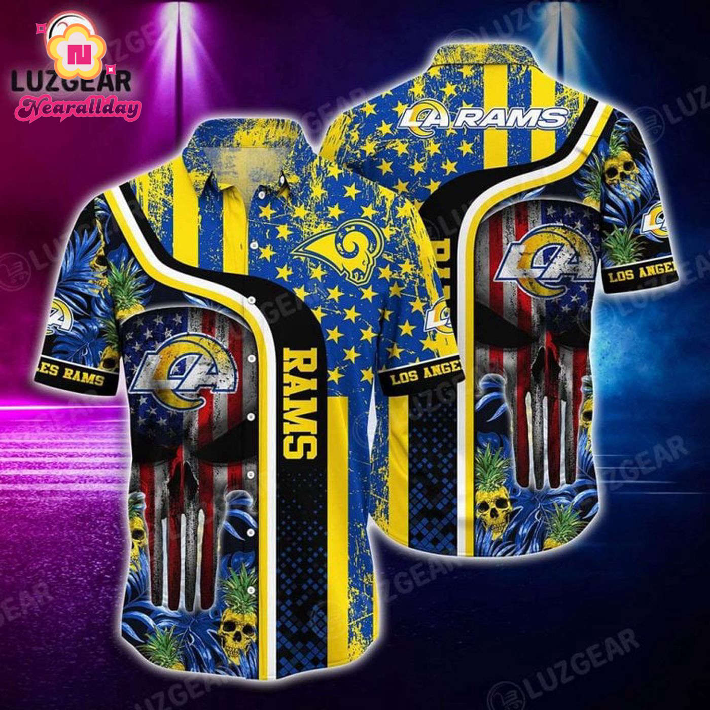 About NFL Los Angeles Rams Graphic Tropical Punisher Skull Hawaiian Shirt Men & Women Aloha Shirt information: