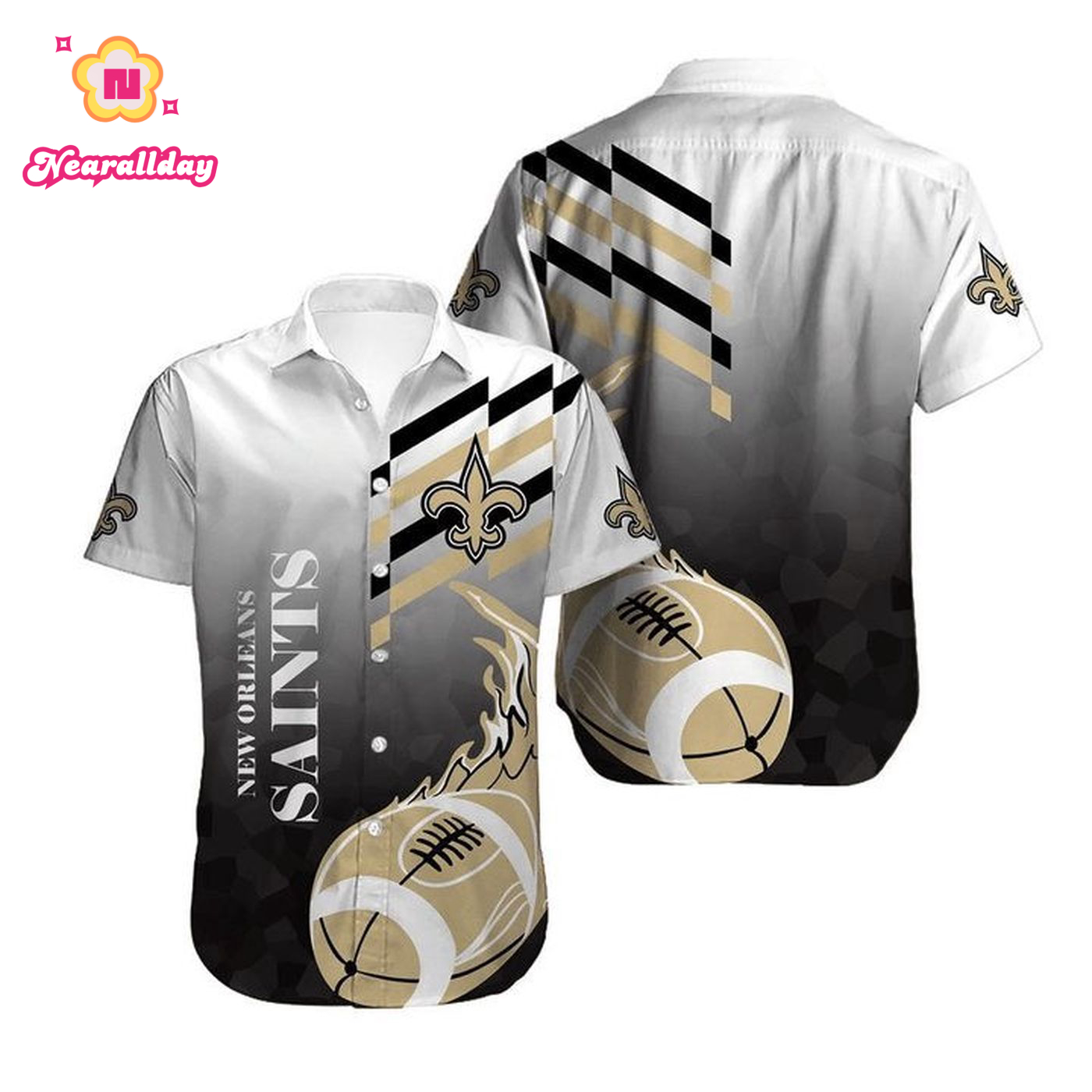 About NFL New Orleans Saints White Grey Ball Hawaiian Shirt Men & Women Aloha Shirt information:
