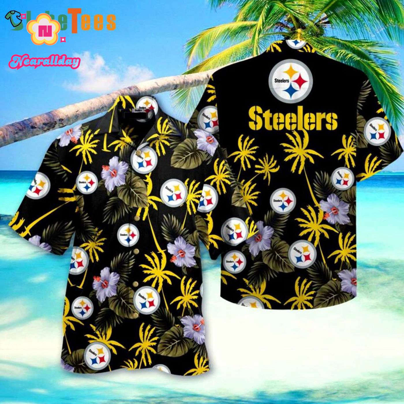 About NFL Pittsburgh Steelers Logo And Hibiscus Flower Hawaiin Shirt Perfect Gifts For Your Loved Ones information: