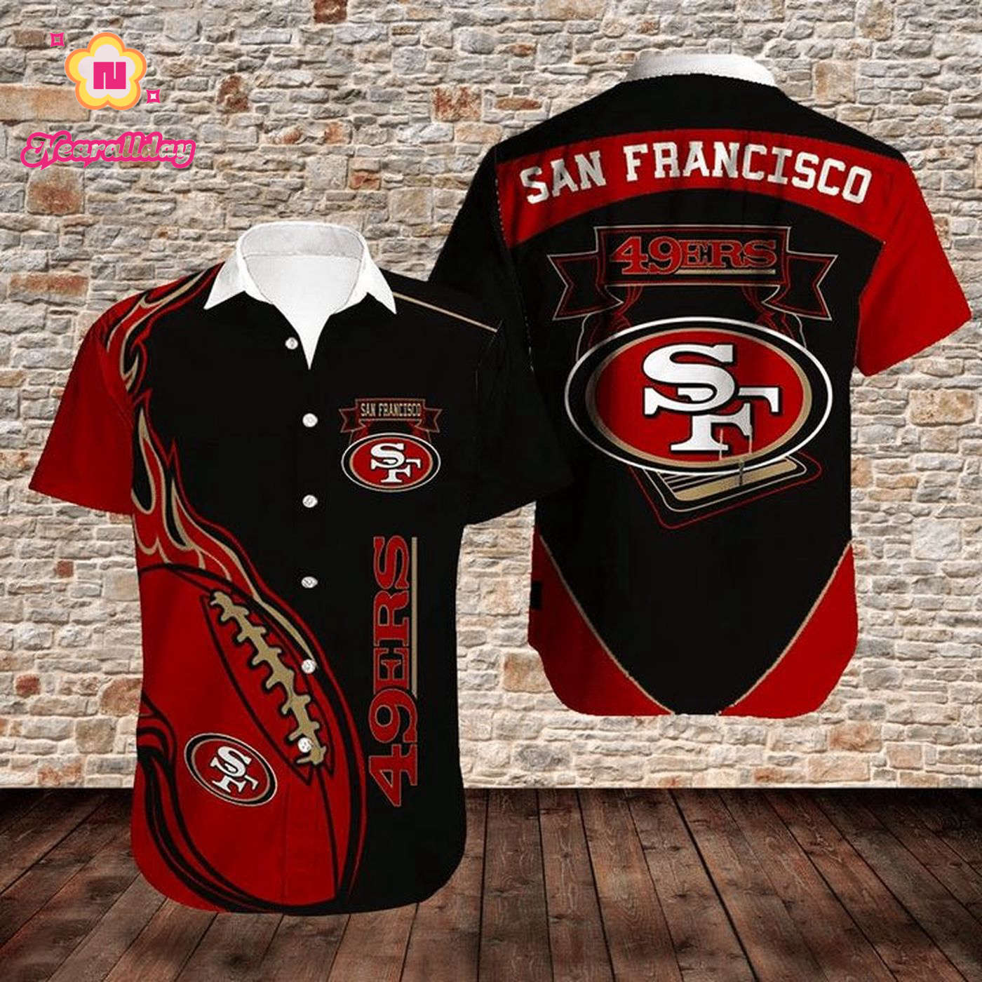 Get fired up with this NFL San Francisco 49ers Hawaiian shirt! Featuring a bold black and red design with a fiery football motif, this shirt is perfect for both men and women. Made with high-quality materials, this shirt offers style, comfort, and team spirit all in one. Stand out in the crowd and show your support for the 49ers with this unique and eye-catching Aloha shirt.