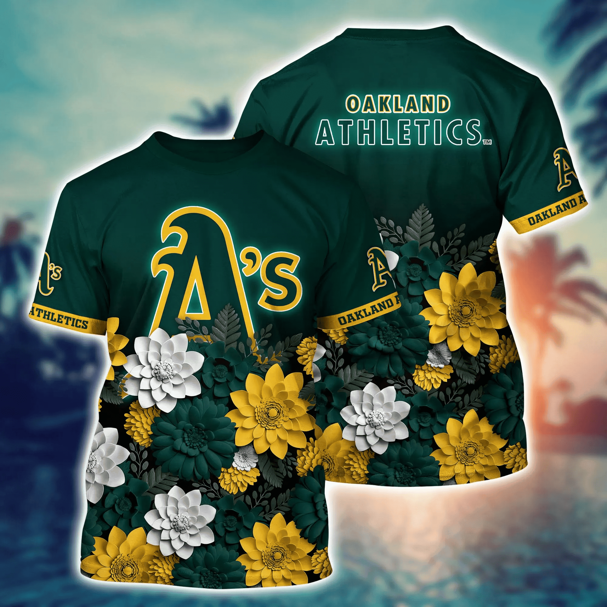 About Oakland Athletics Flower 3D Button Hawaii Shirt Gift for Men Dad Father And T Shirt For Fans, Summer Football Shirts information: