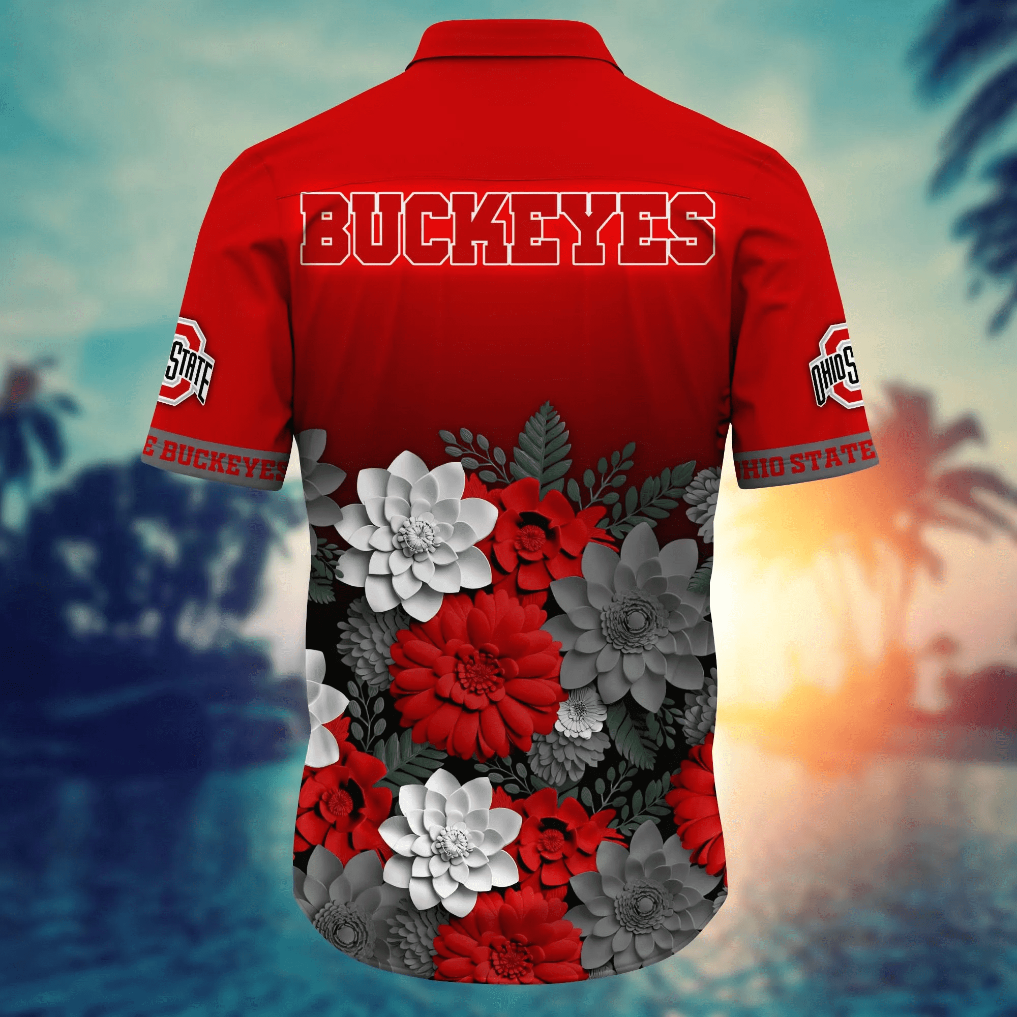 About Ohio State Buckeyes Flower 3D Button Hawaii Shirt Gift for Men Dad Father And T Shirt For Fans, Summer Football Shirts information: