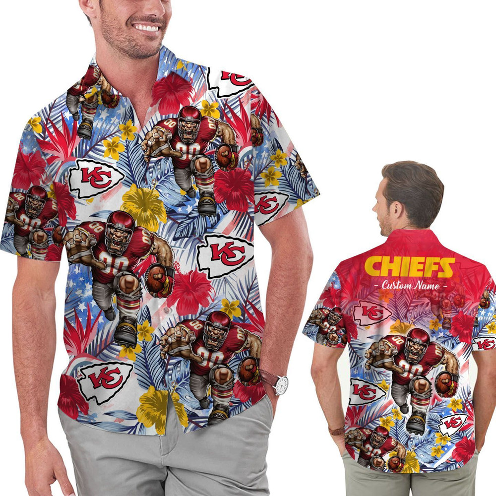 About Personalized Kansas City Chiefs Tropical Floral America Flag Hawaiian Shirt information:
