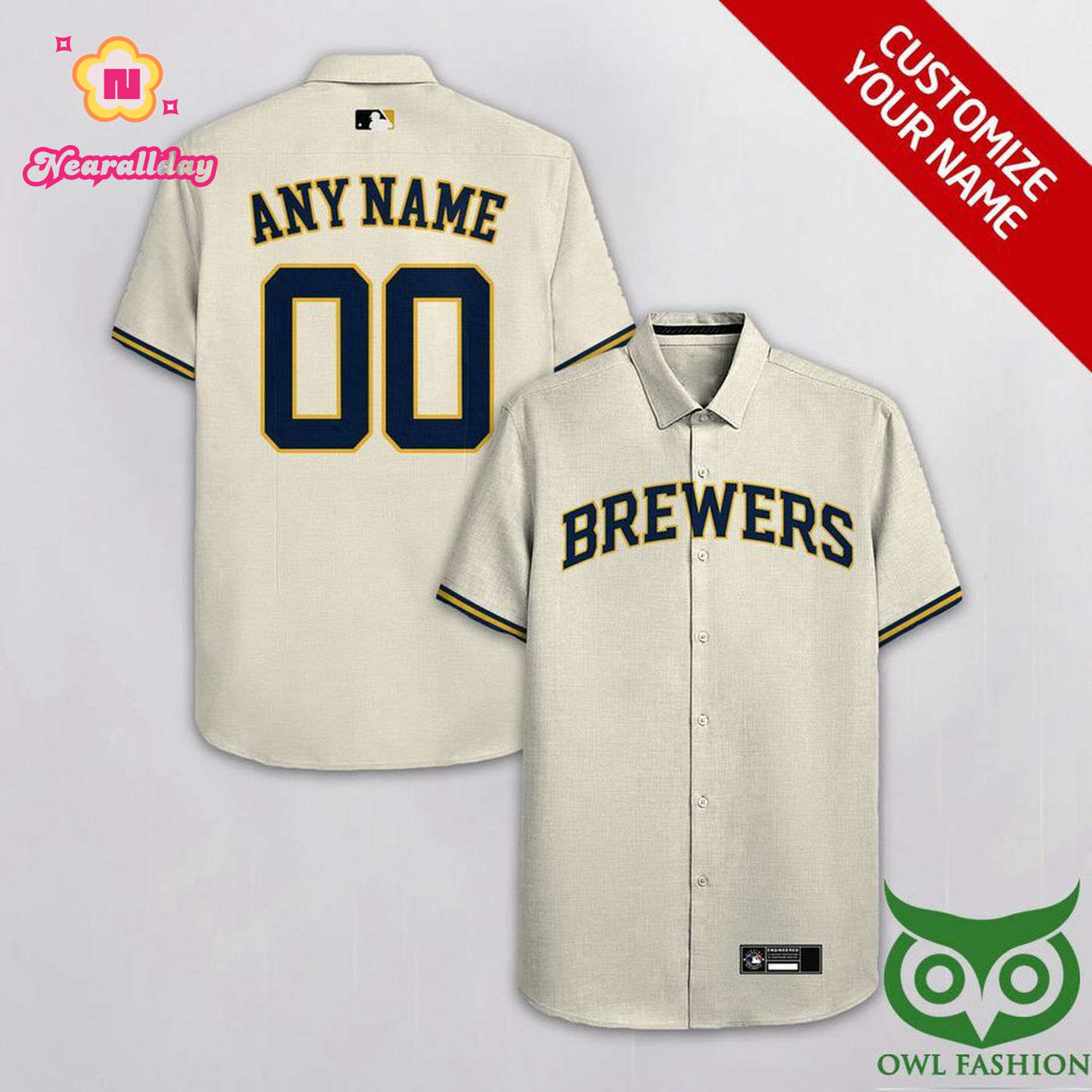 About Personalized Milwaukee Brewers Beige Hawaiian Shirt with Custom Name & Number information: