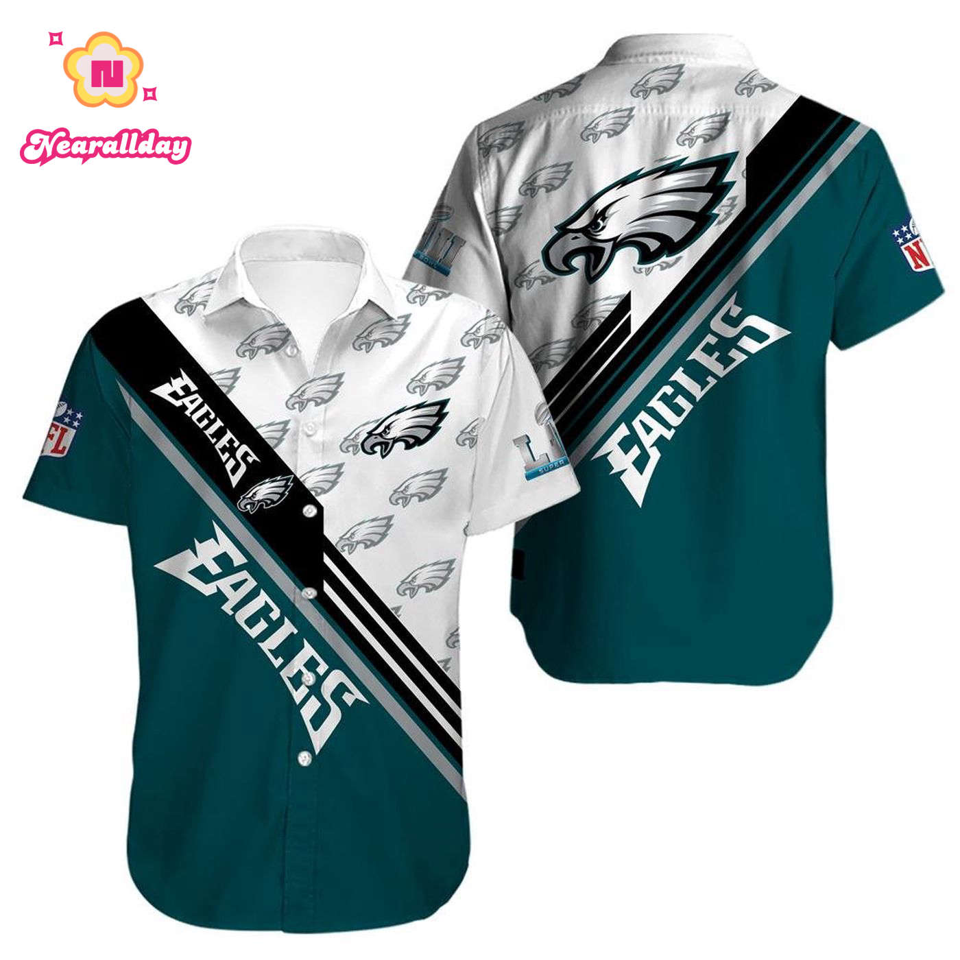 Bring the spirit of the Philadelphia Eagles to your wardrobe with our Hawaiian Shirt N01. Made with high-quality materials, this shirt features the team’s iconic logo and colors, allowing you to show off your fan pride in style. Perfect for game days, tailgates, or just lounging around, this shirt is a must-have for any Eagles enthusiast. Stand out from the crowd and showcase your team loyalty with this unique and vibrant shirt. Fly Eagles Fly!
