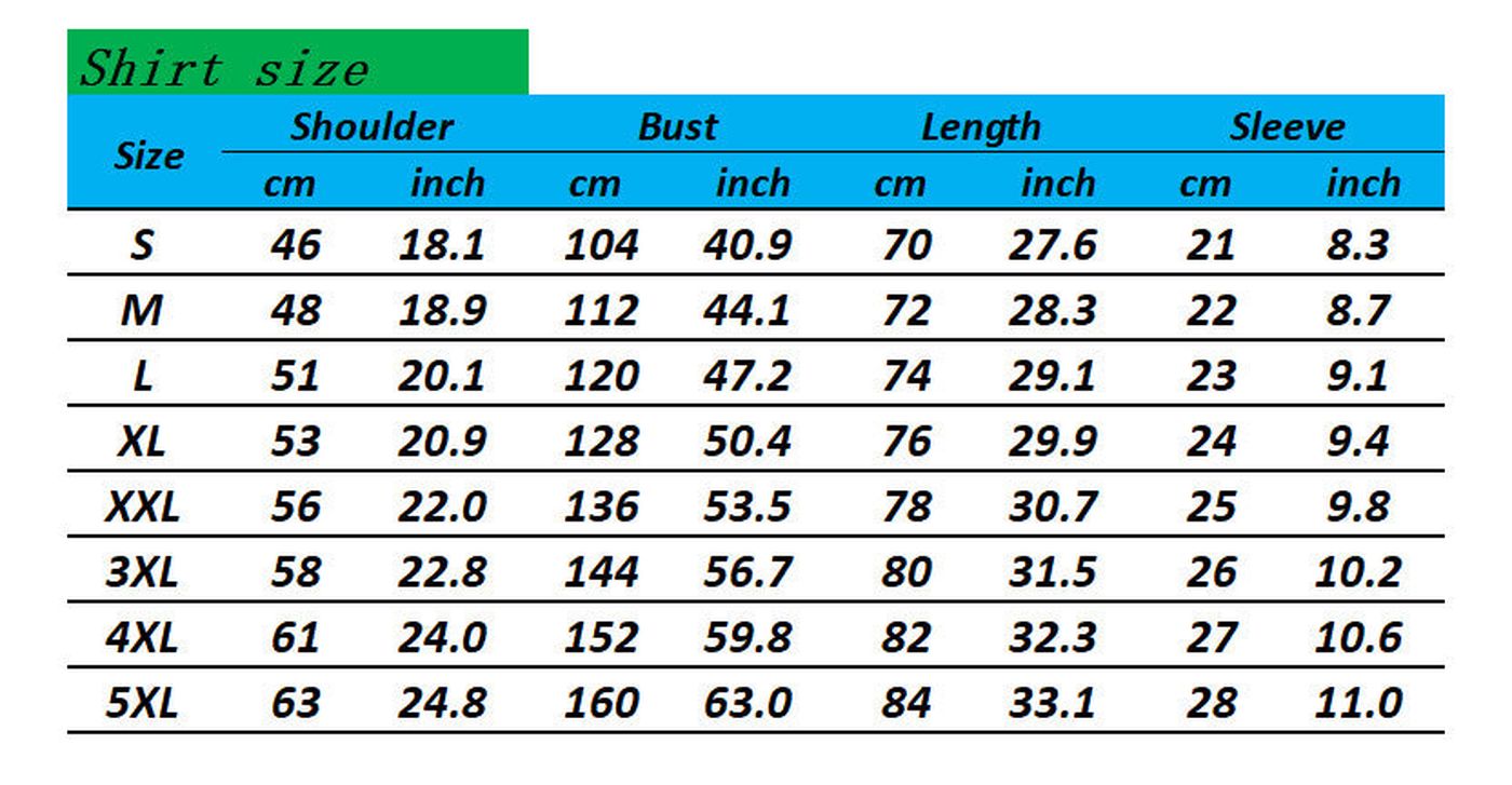 - Wide Range of Sizes: From S to 5XL, we’ve got every body type covered. Find your perfect fit and embrace your unique style.