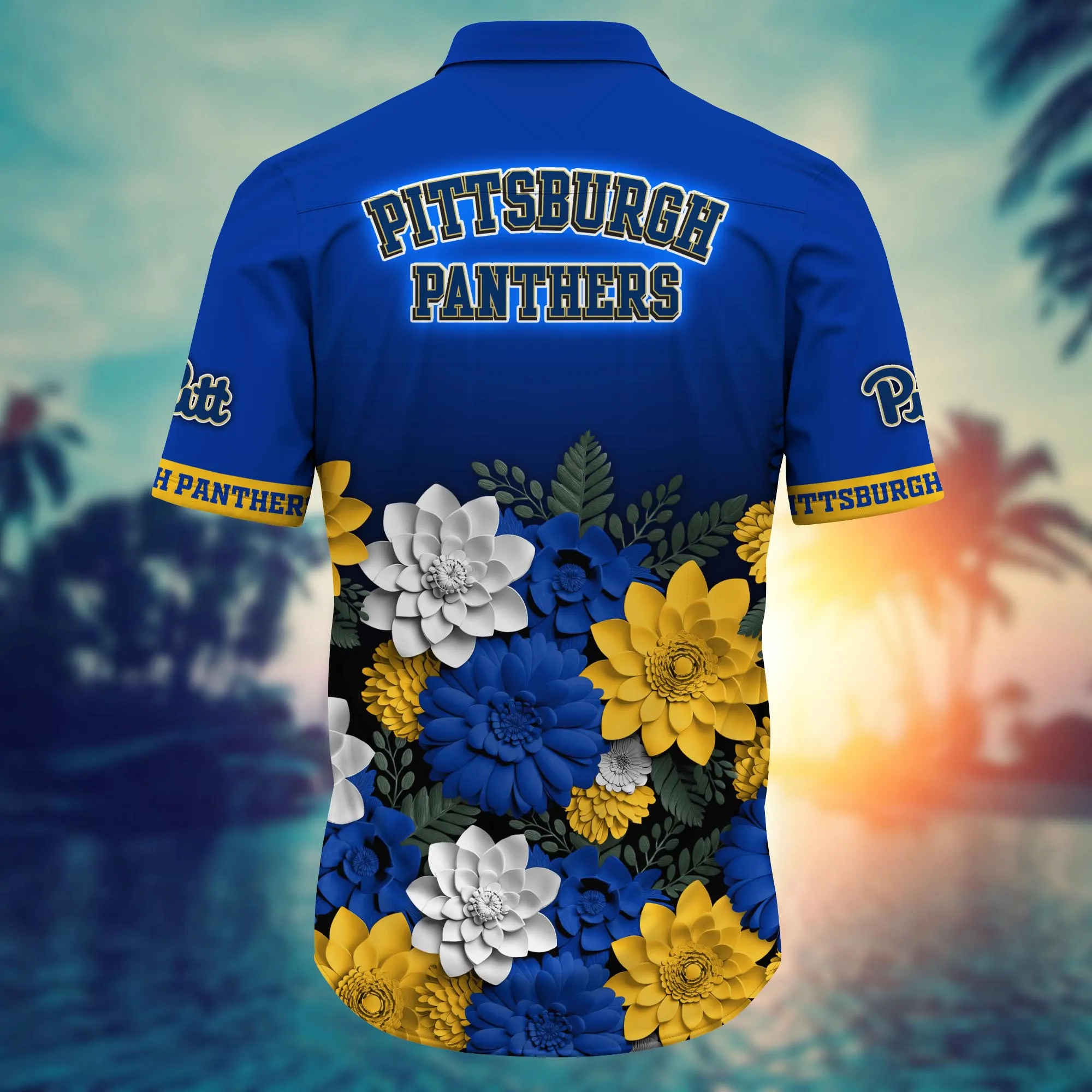 About Pittsburgh Panthers Flower 3D Button Hawaii Shirt Gift for Men Dad Father And T Shirt For Fans, Summer Football Shirts information: