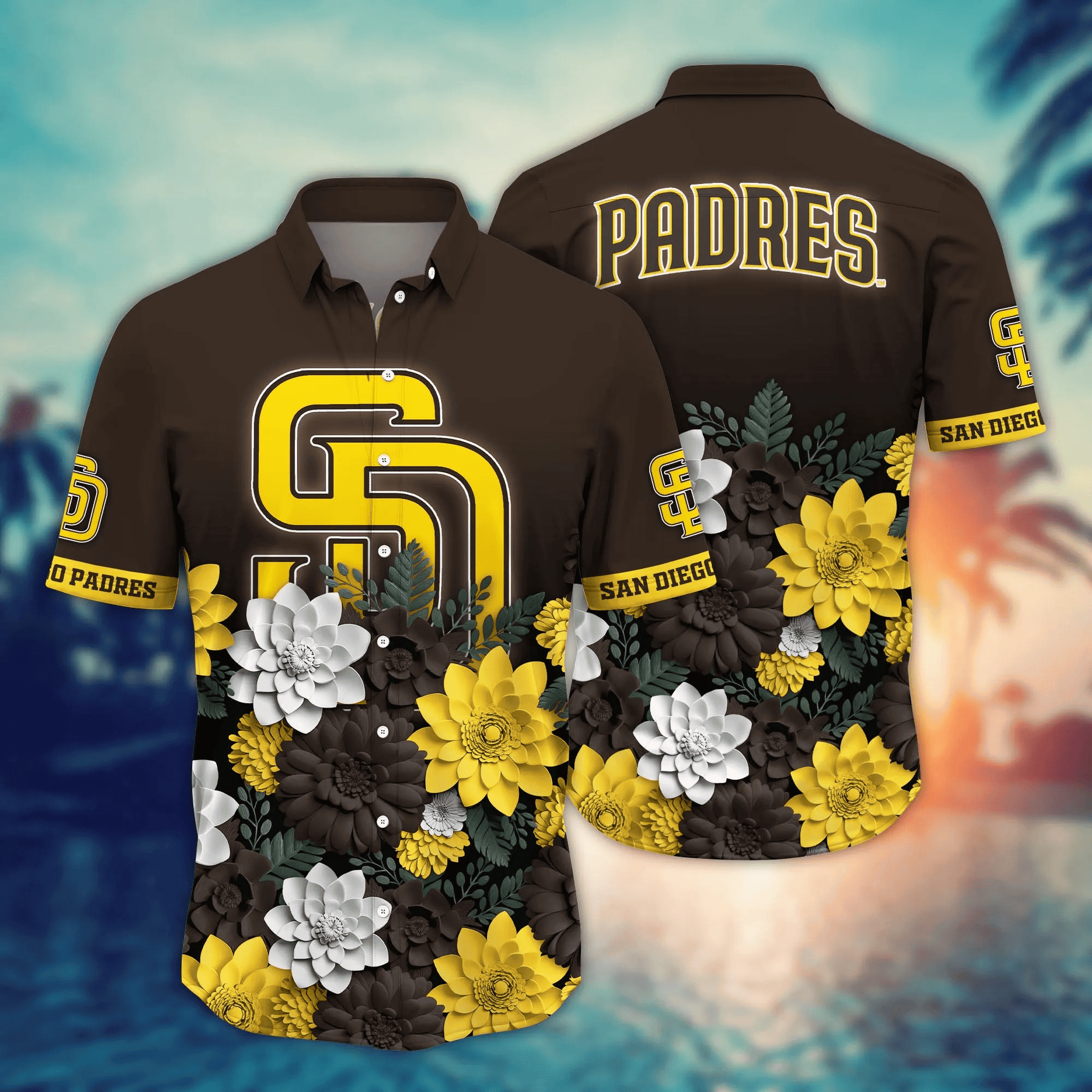 San Diego Padres Flower 3D Button Hawaii Shirt Gift for Men Dad Father And T Shirt For Fans, Summer Football Shirts
