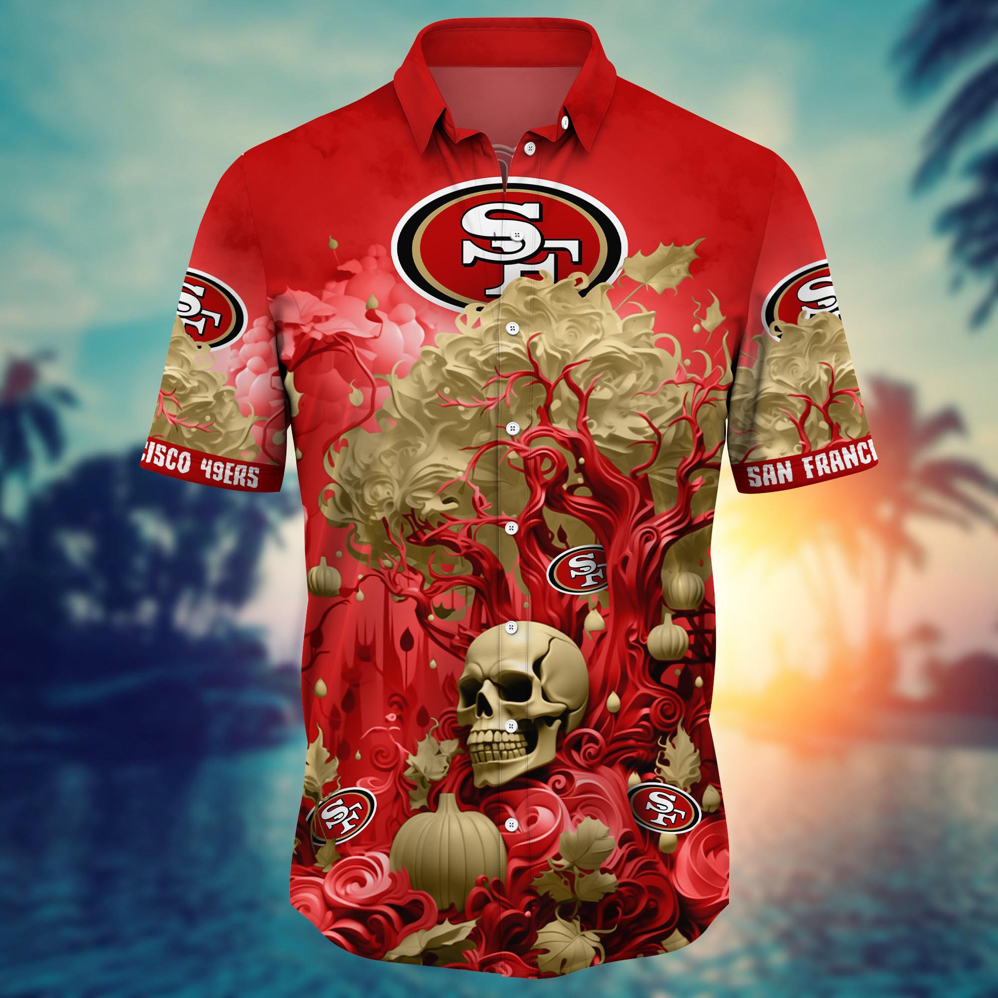 Stand out in style with our San Francisco 49ers Skull Trending Hawaii Shirt! Made from high-quality materials, this shirt features a unique design that showcases your team pride. Perfect for gifting or adding to your own collection, it offers both comfort and fashion. Get yours today and show your support for the 49ers in a trendy way!