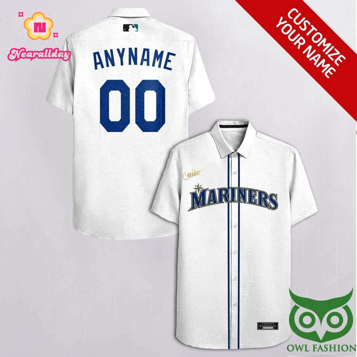 Introducing our Customized Seattle Mariners Hawaiian Shirt! Made with high-quality materials, featuring white with yellow and blue stripes design. Perfect for Mariners fans looking to stand out in style at games or beach parties. Embrace your team spirit with this unique and vibrant shirt!